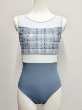 #leotard-no-skirt『スフレツイード』ウエストメッシュレオタード(ブルー)10,890円 – 11,990円 (税込) -