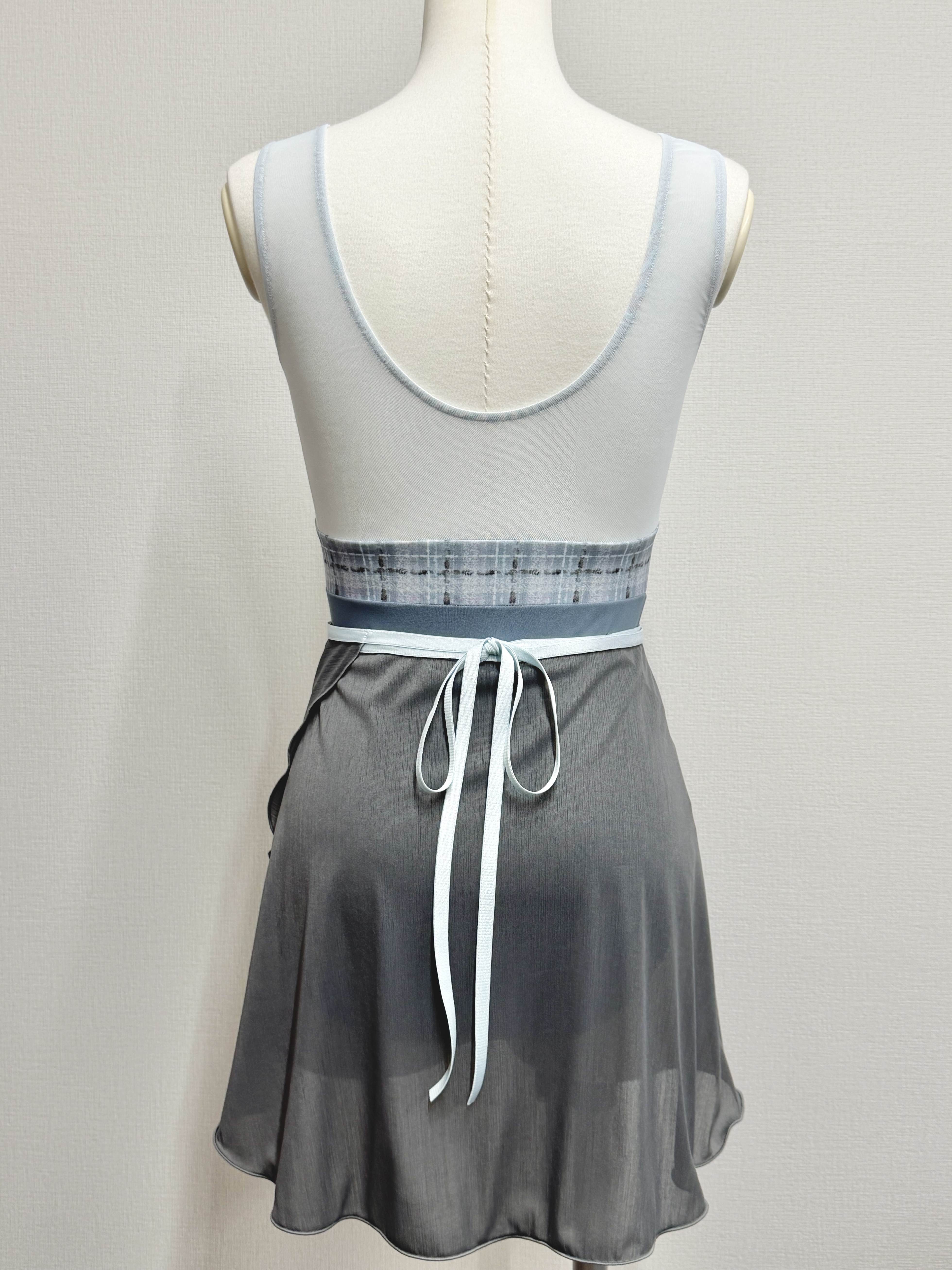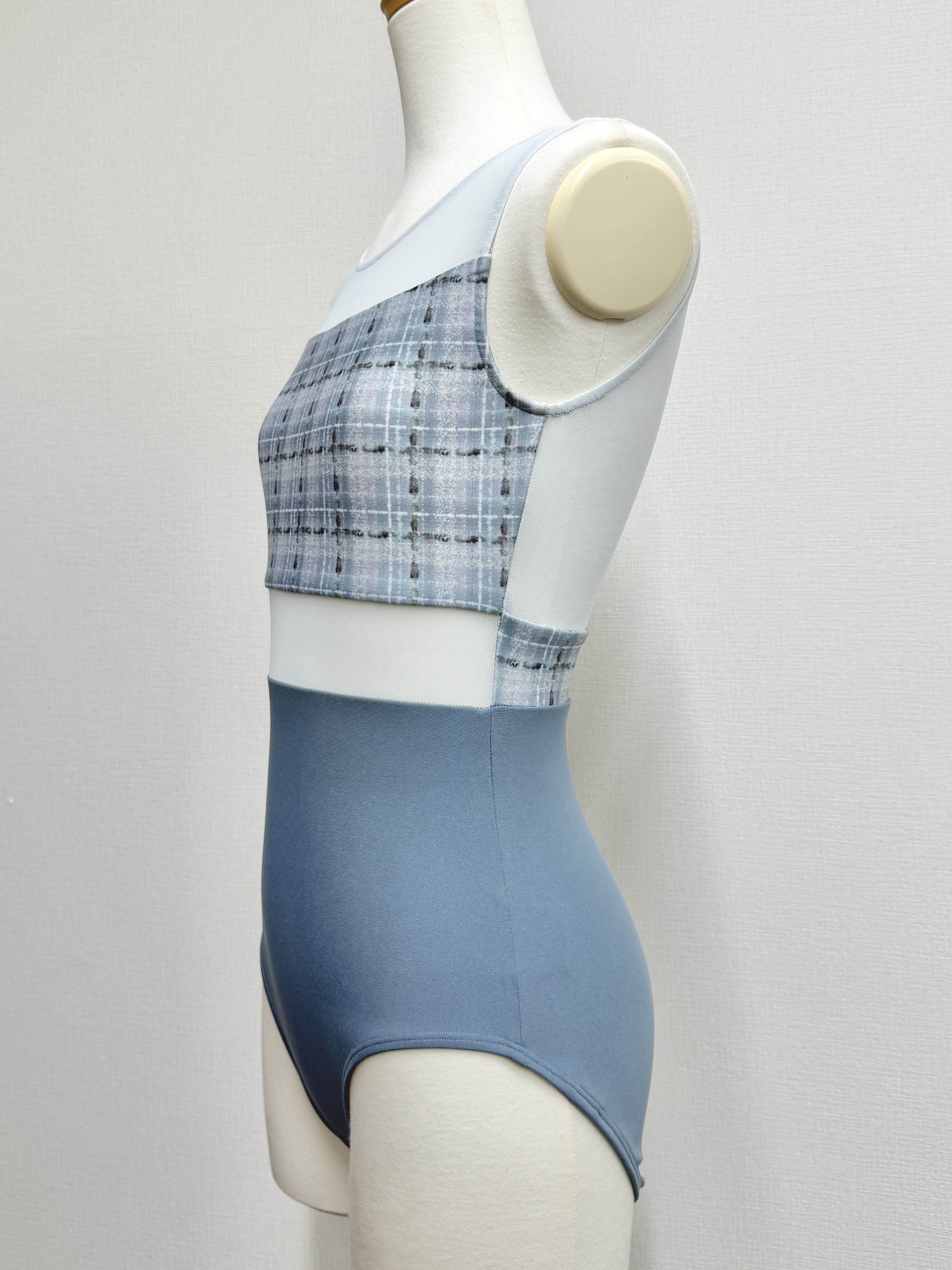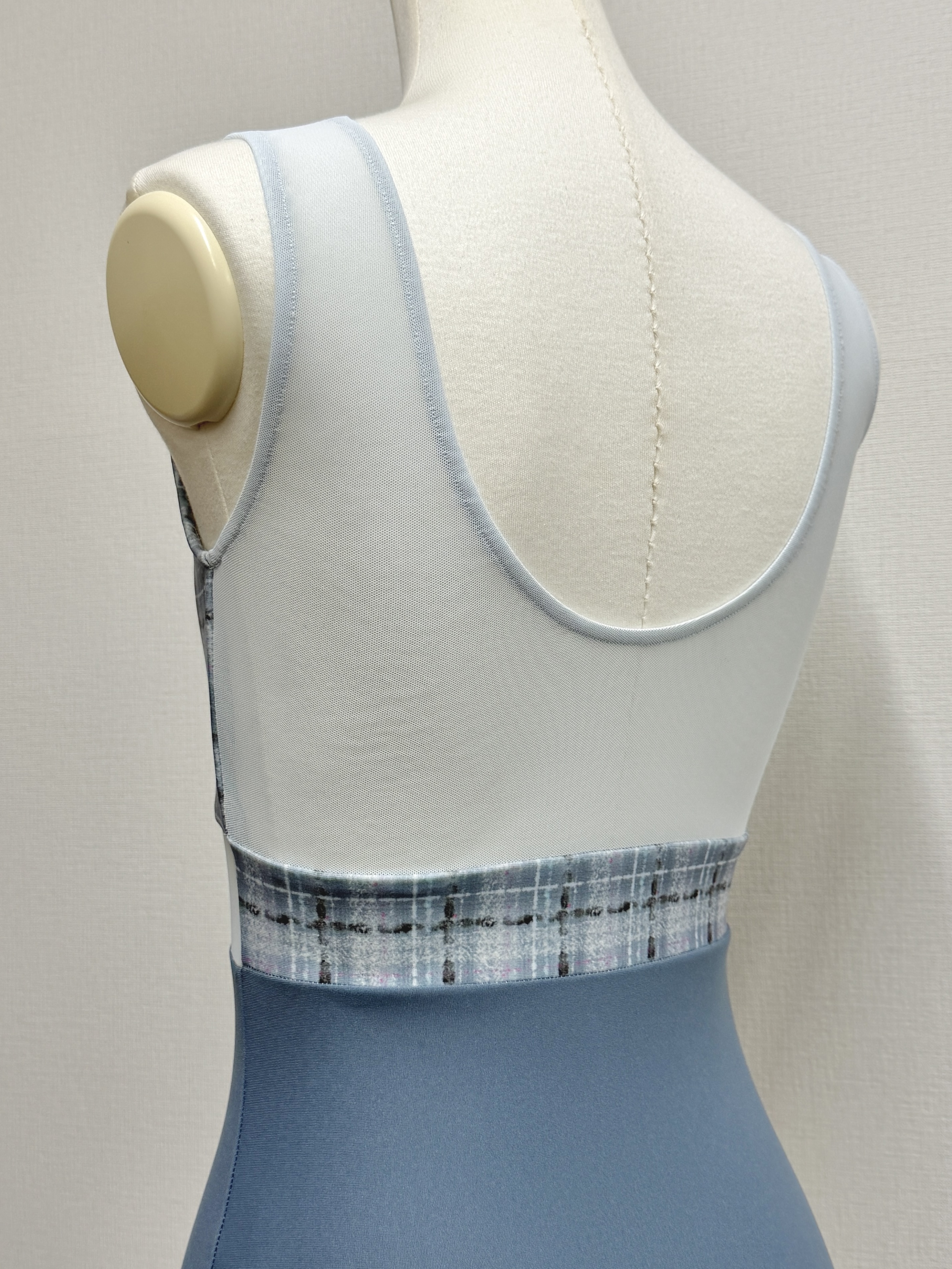 ハイウエスト切り替えが脚長効果☆ウエストメッシュレオタード