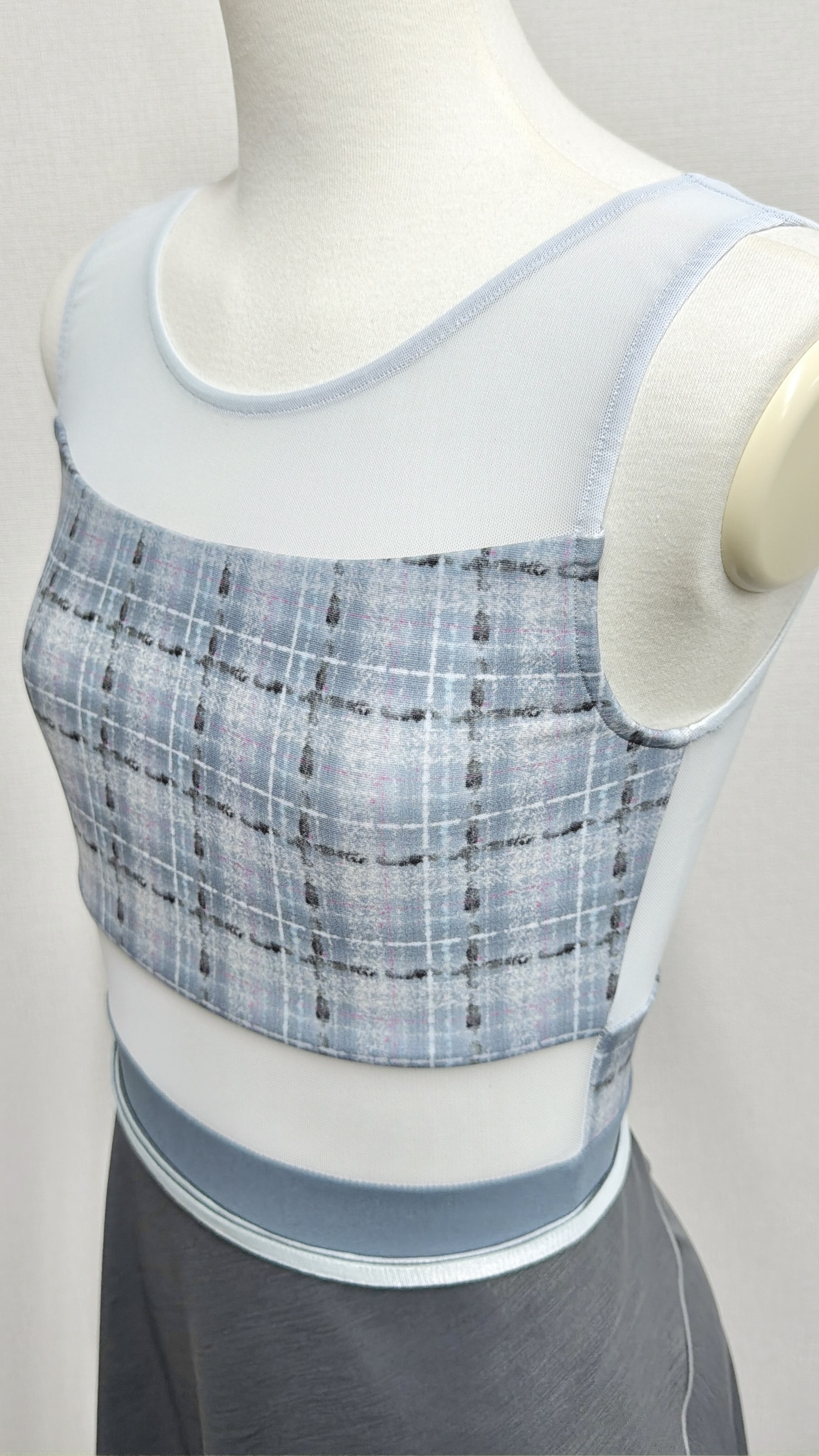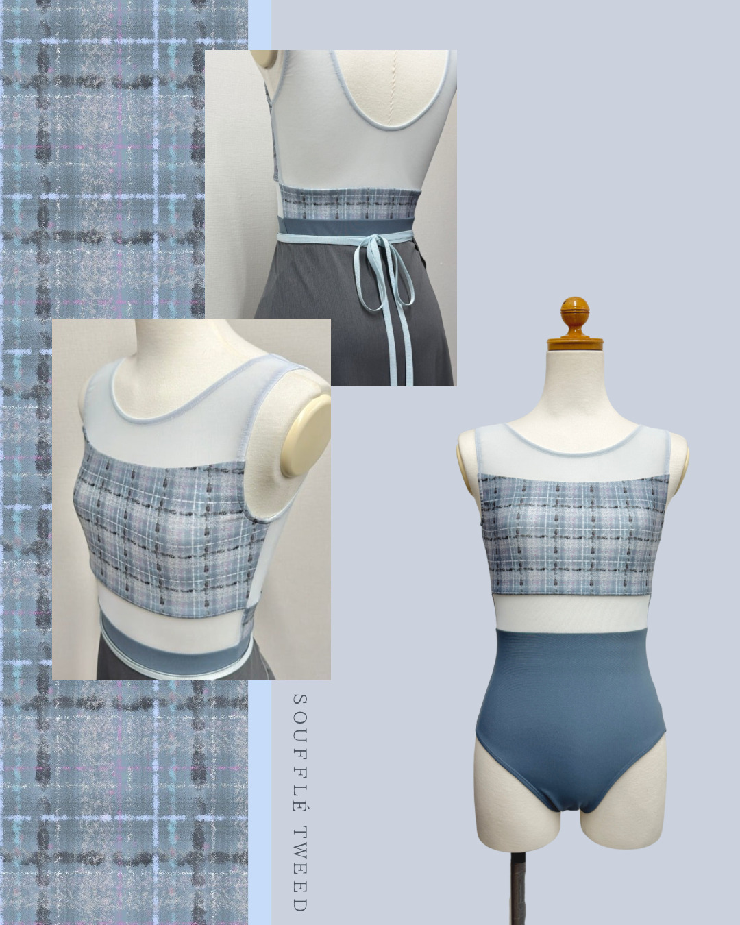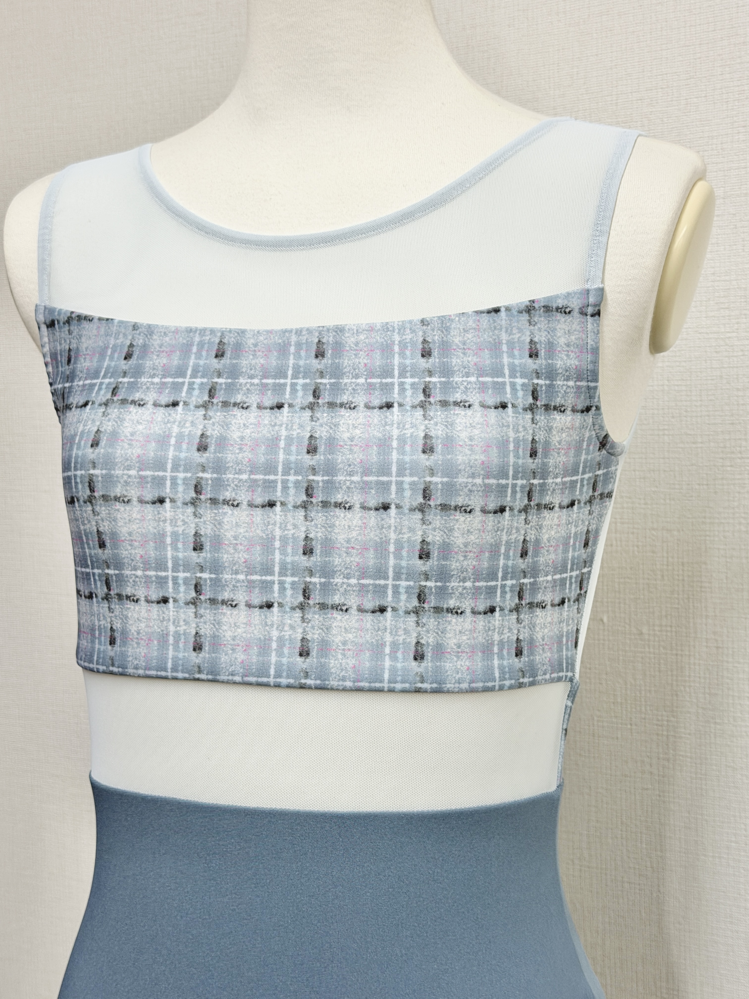 ハイウエスト切り替えが脚長効果☆ウエストメッシュレオタード