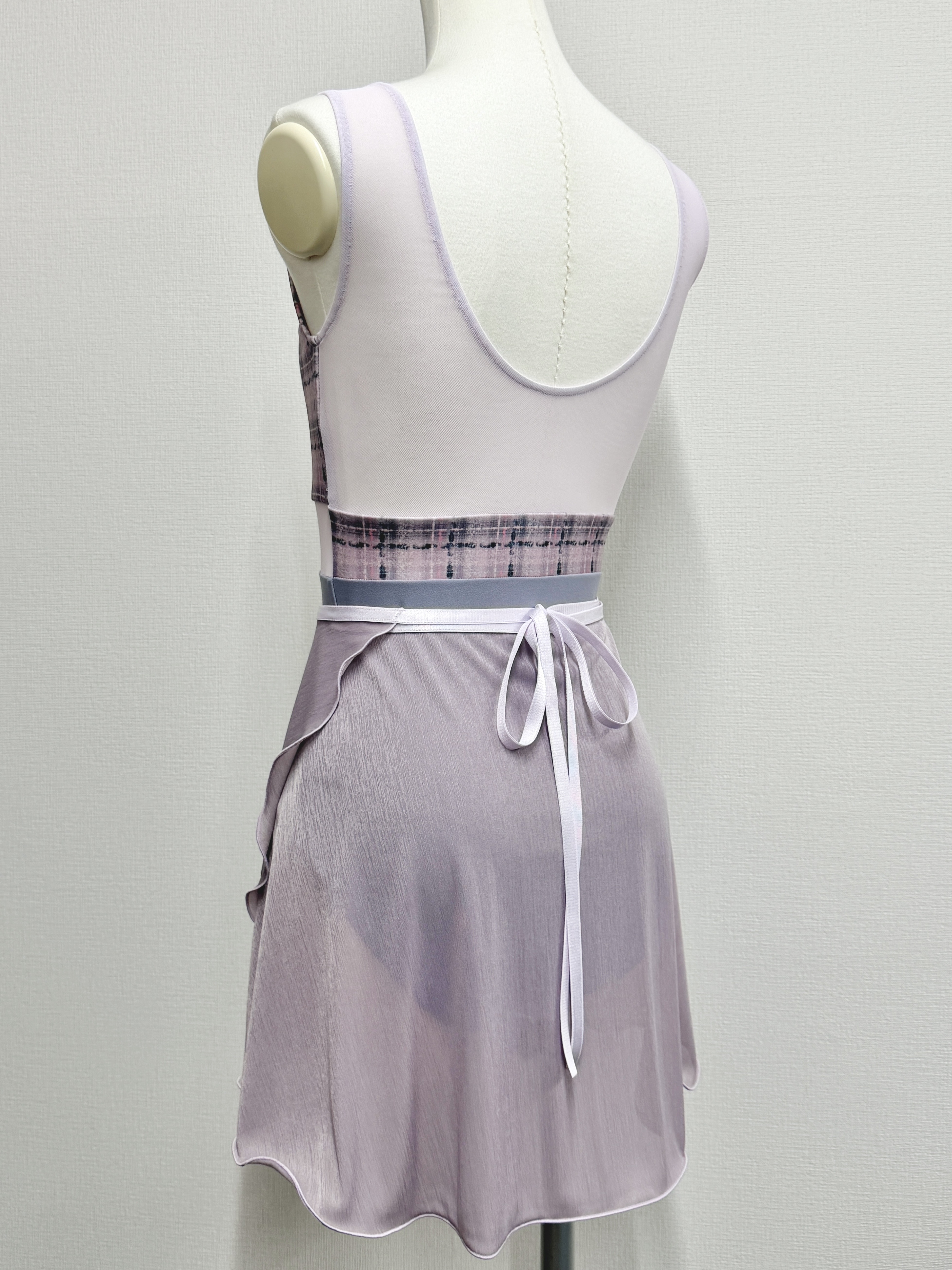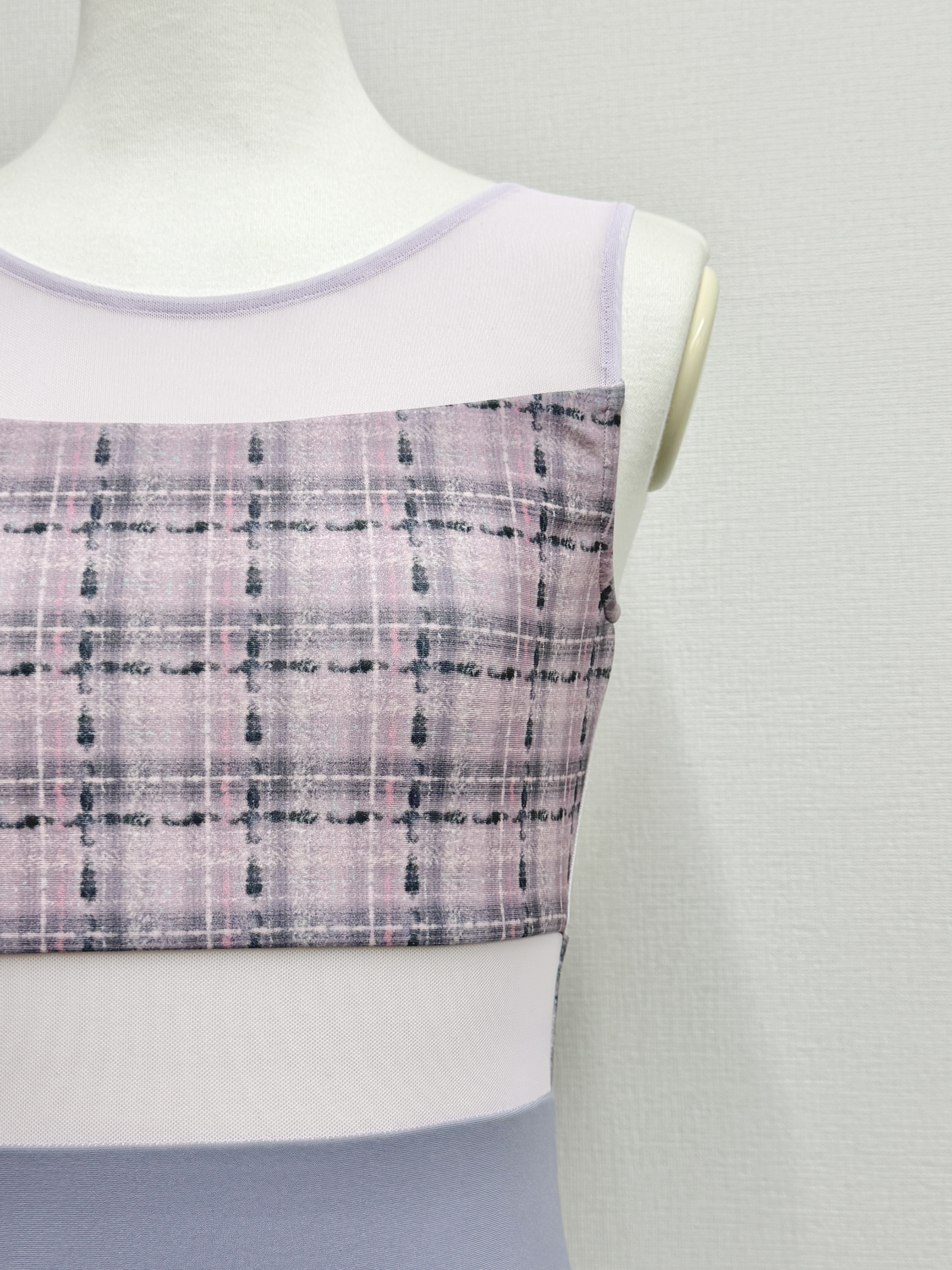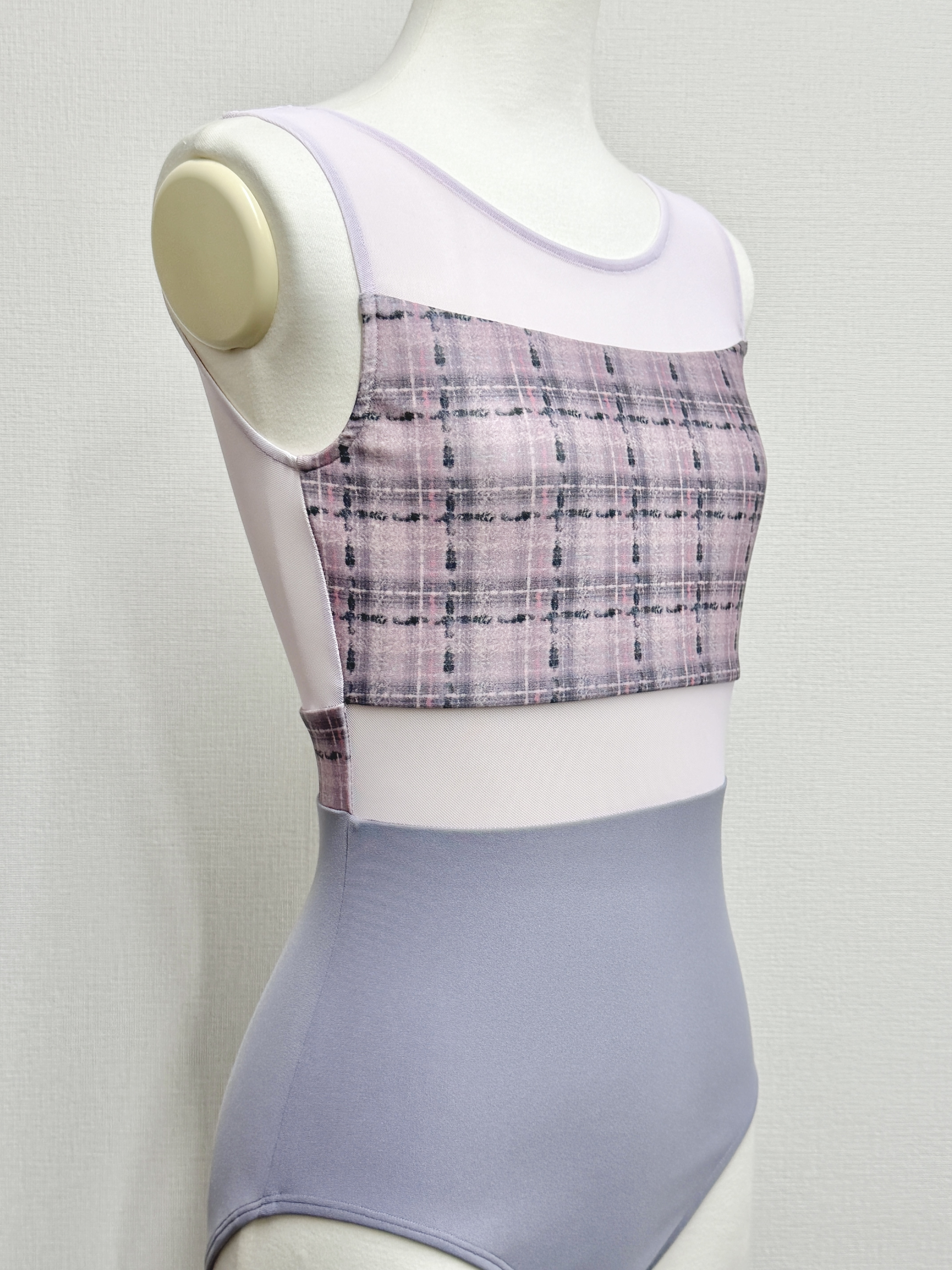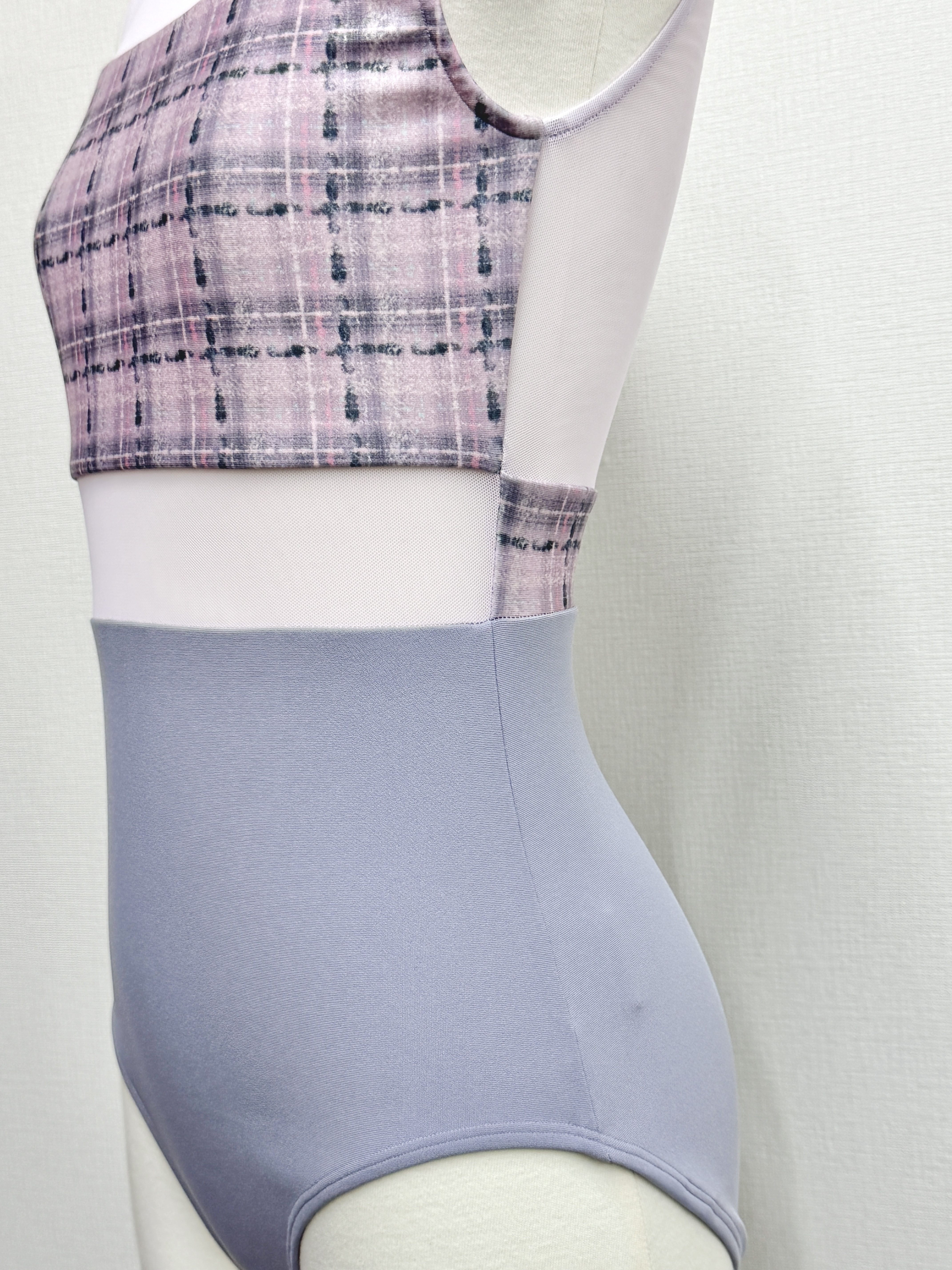 ハイウエスト切り替えが脚長効果☆ウエストメッシュレオタード