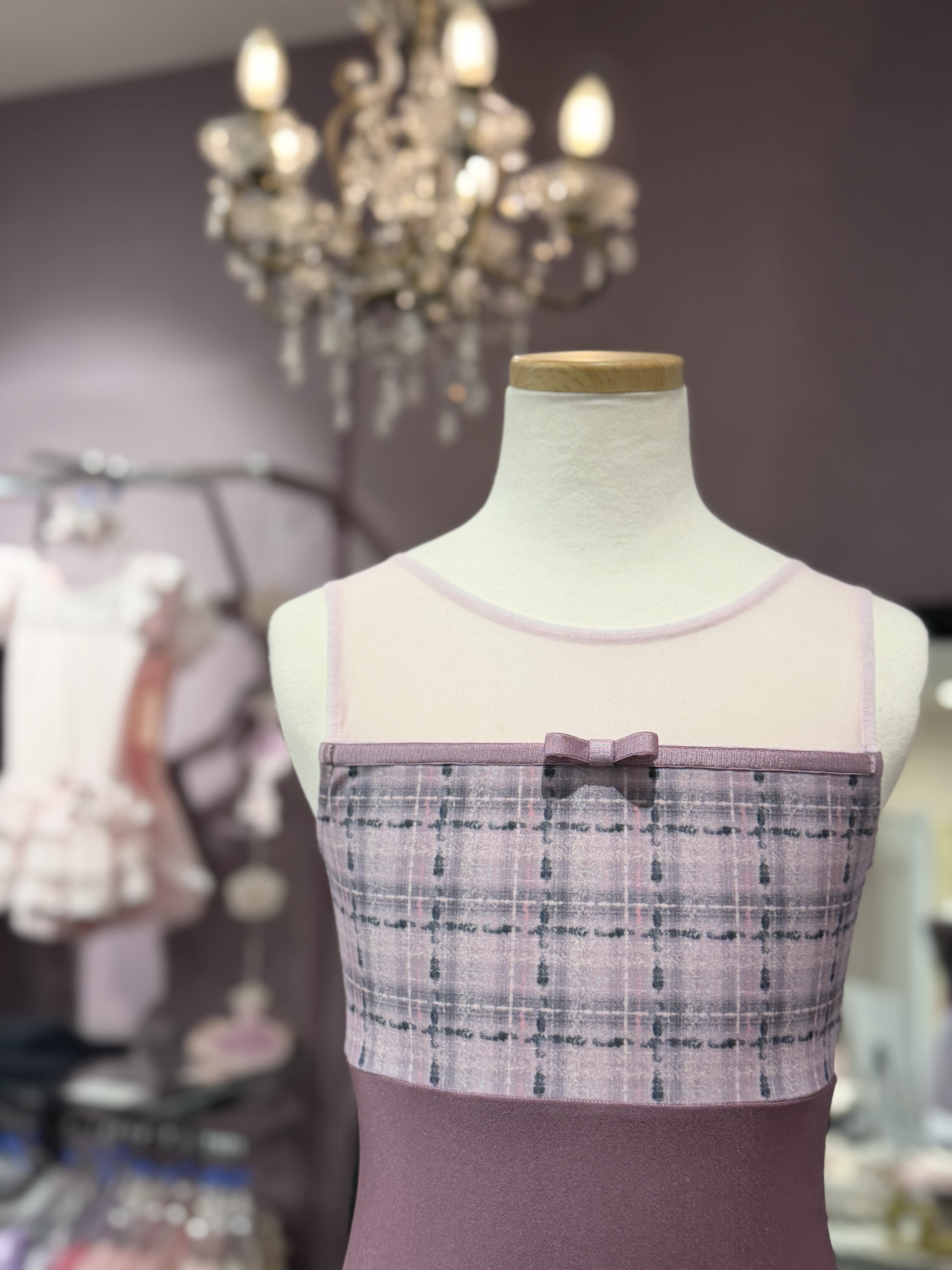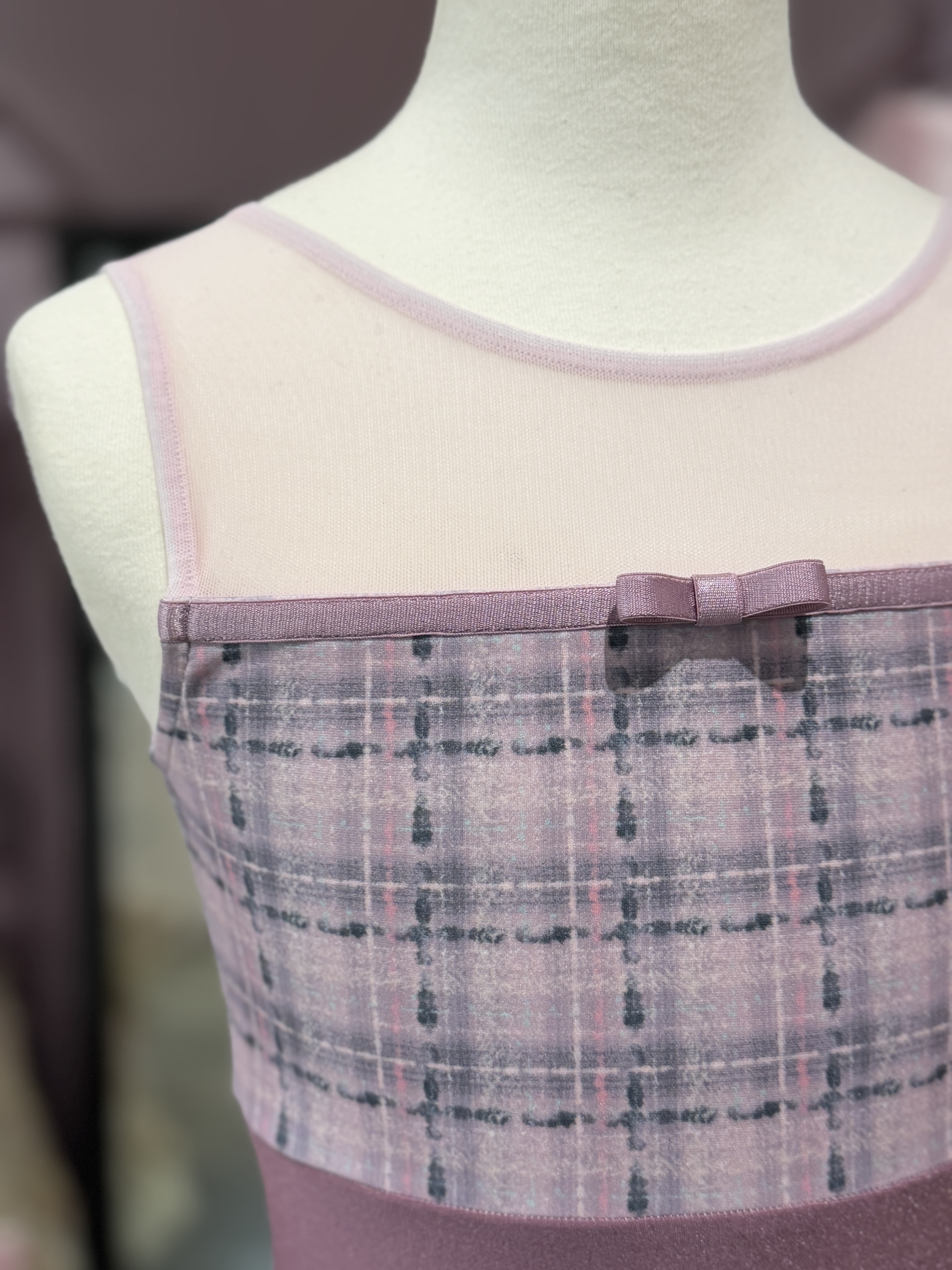 『スフレツイード』ストレッチリボンレオタード(ピンクローズ)