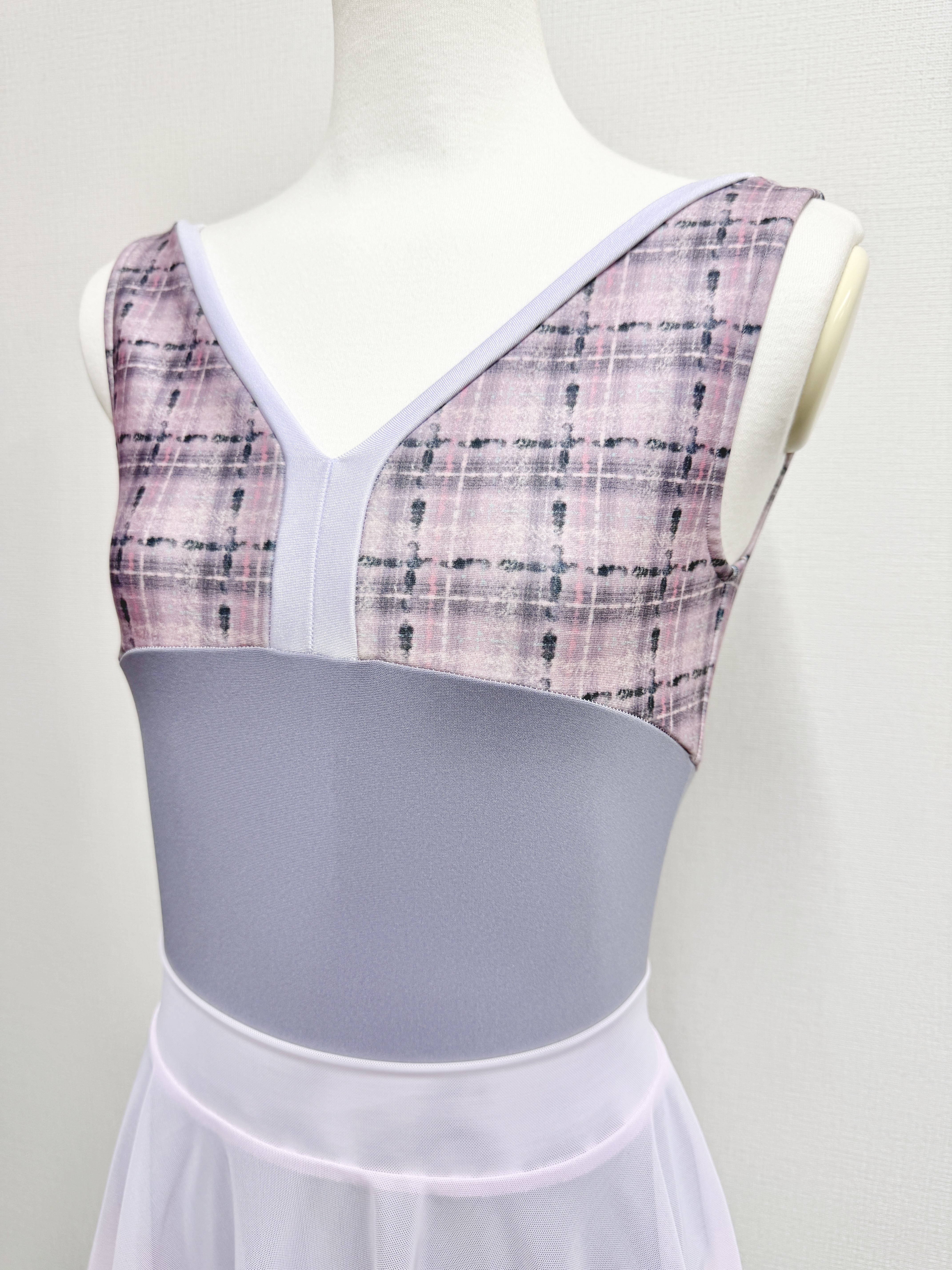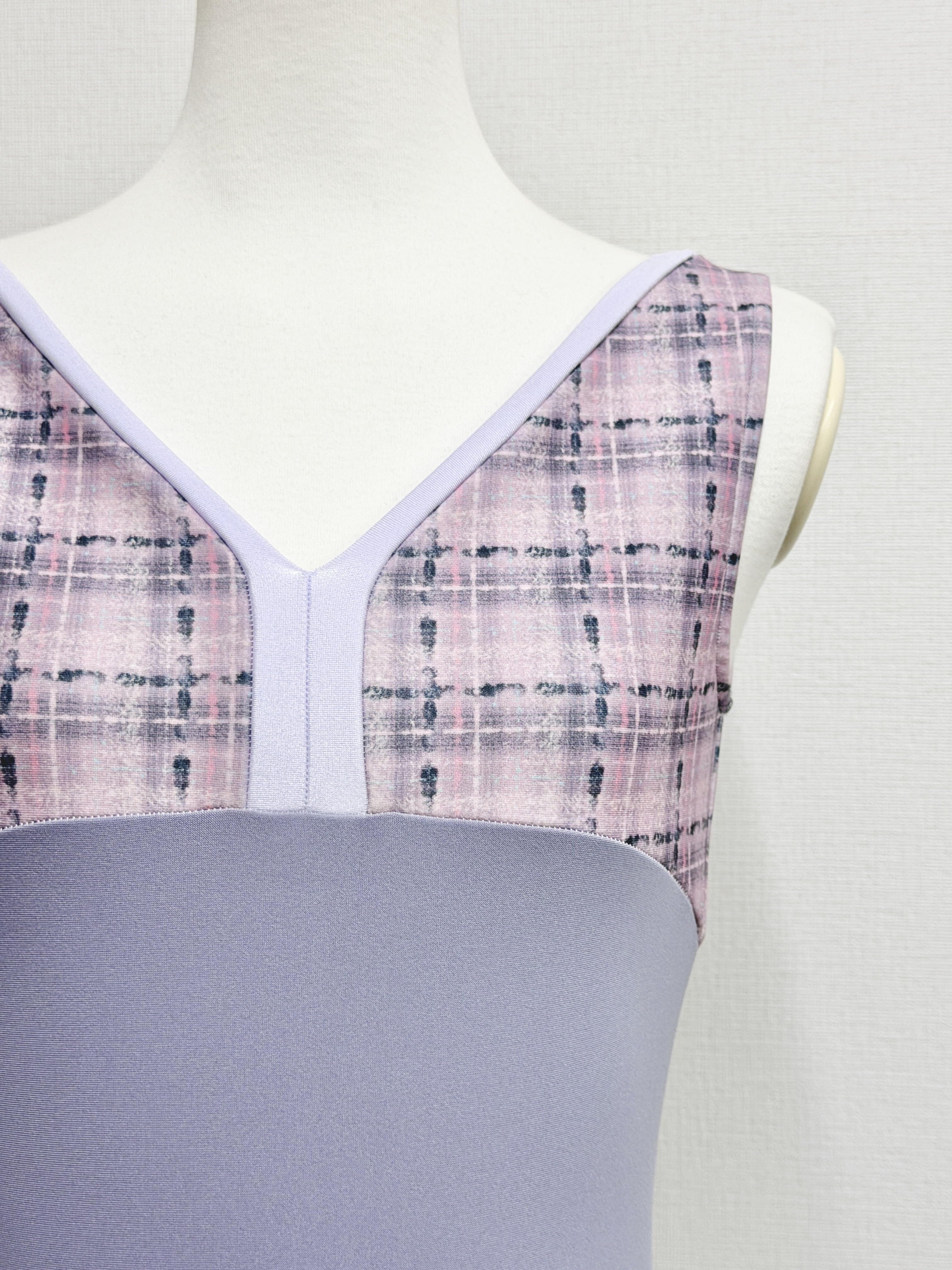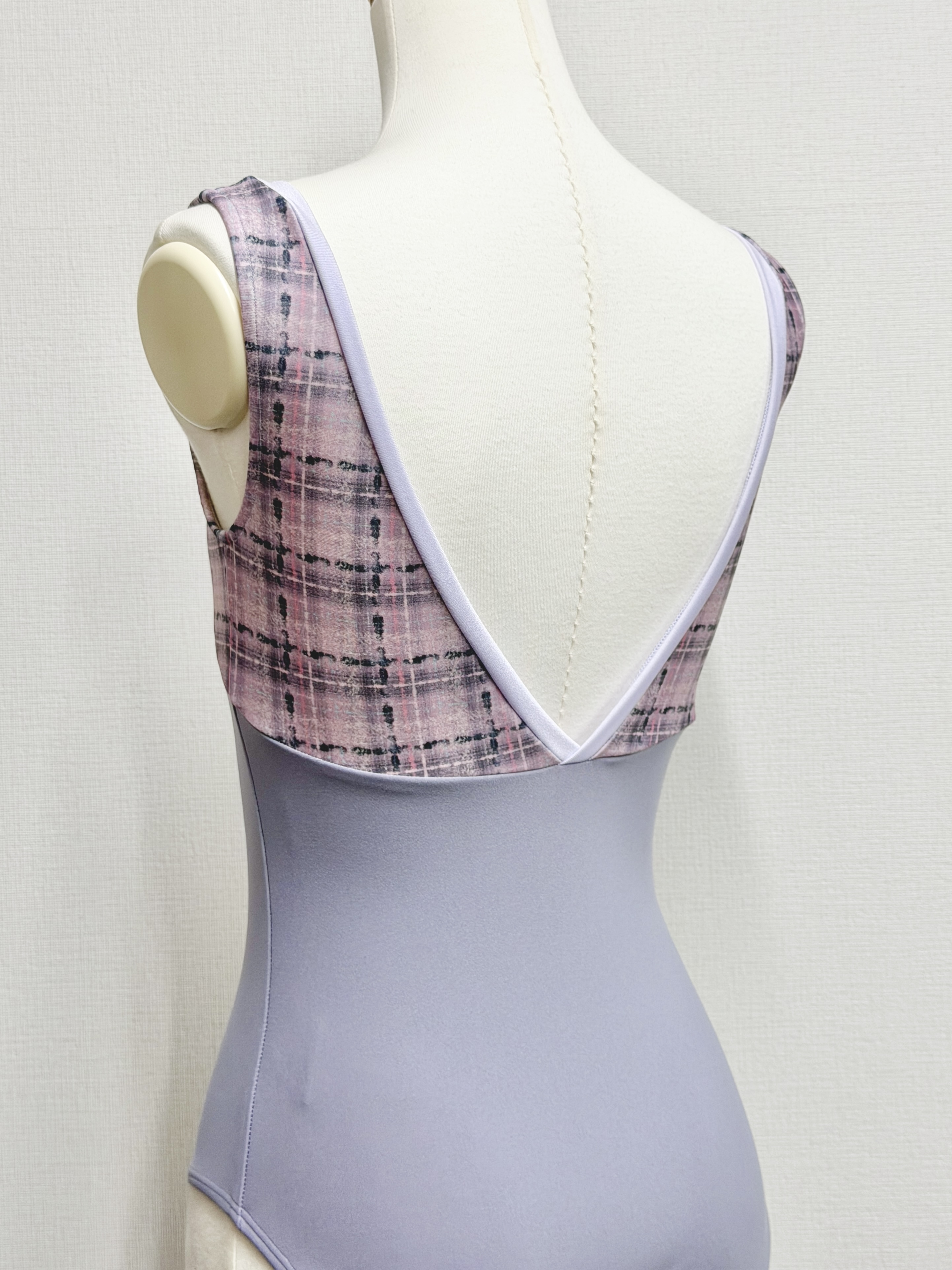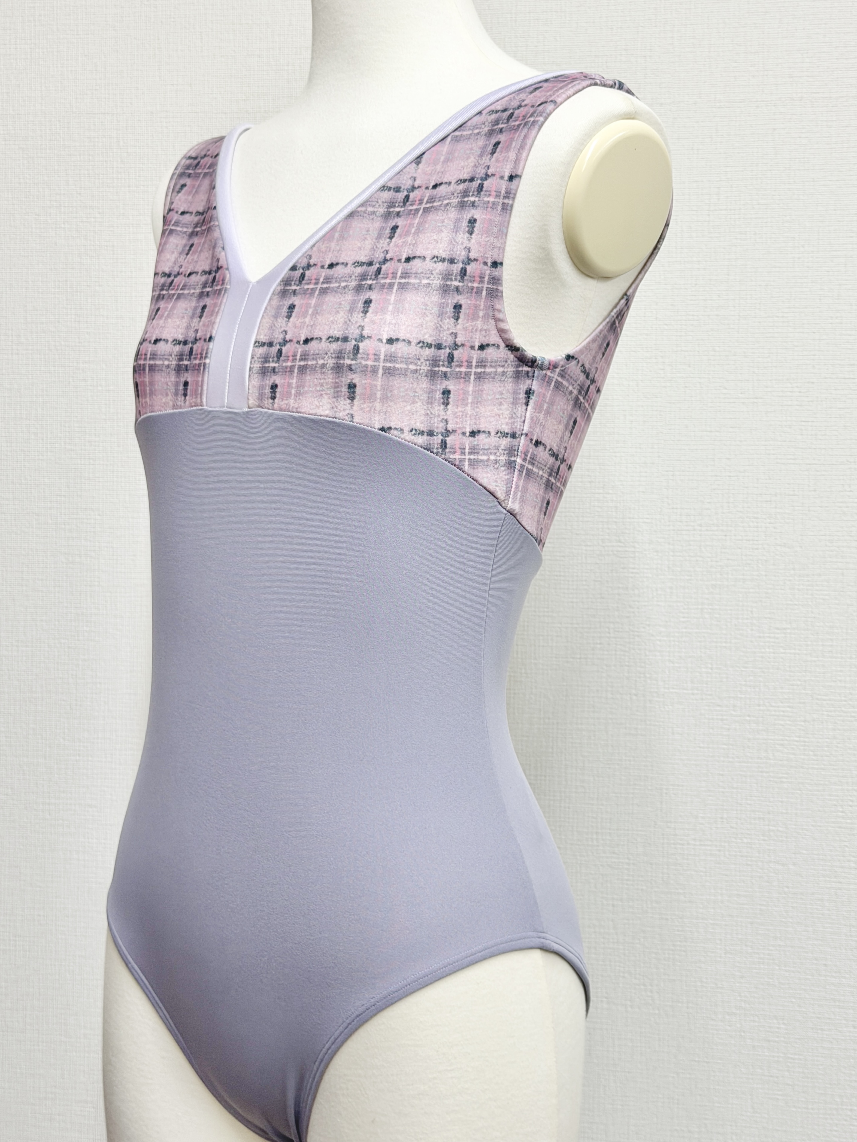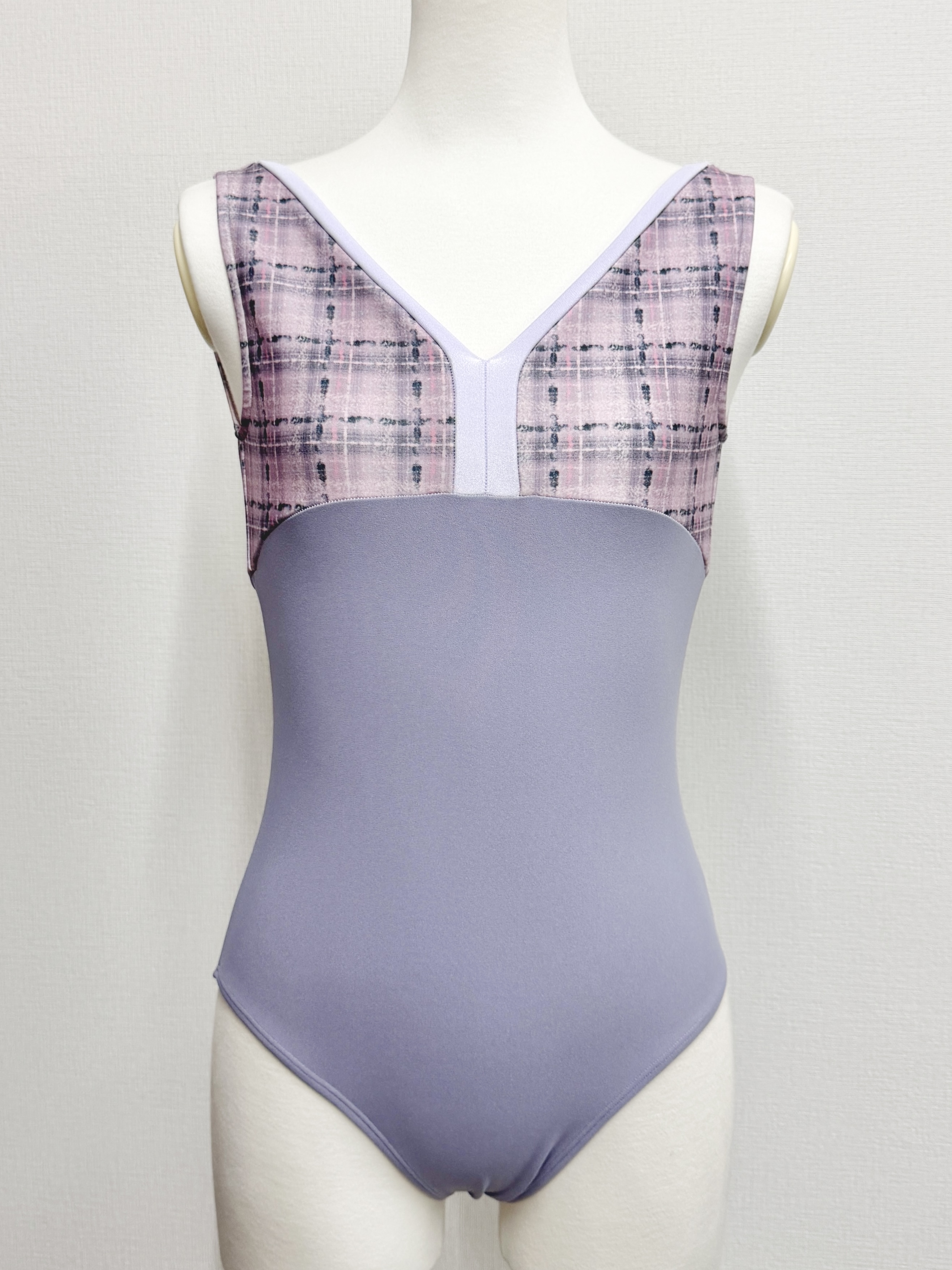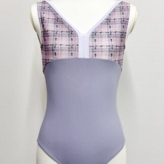 『スフレツイード』パイピングVネックレオタード(ピンクラベンダー)