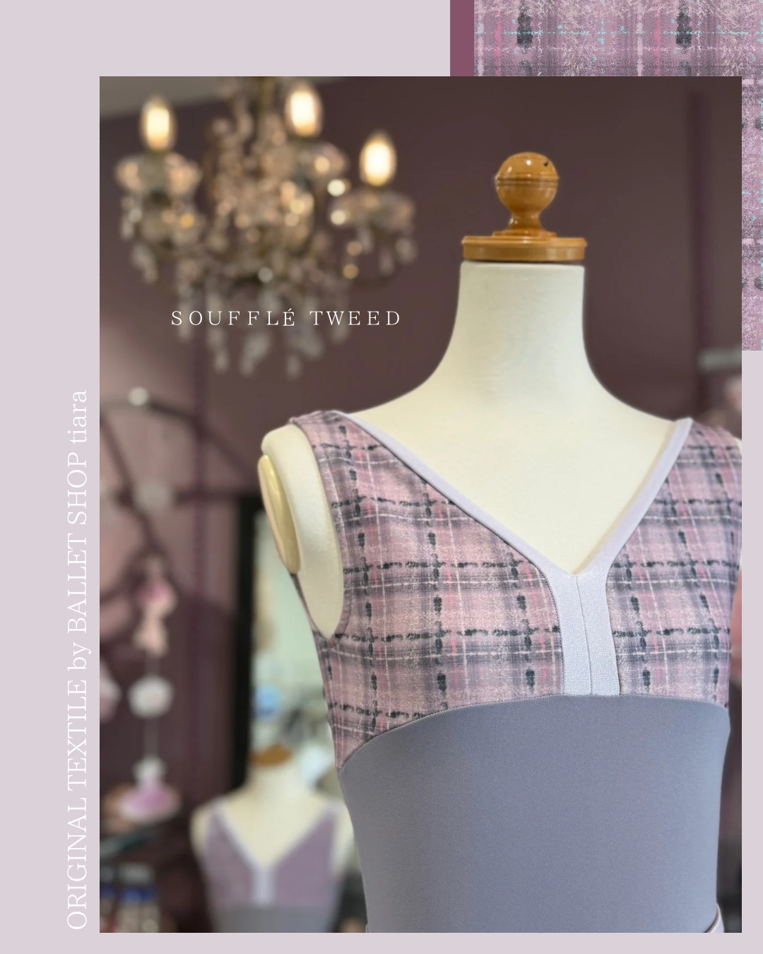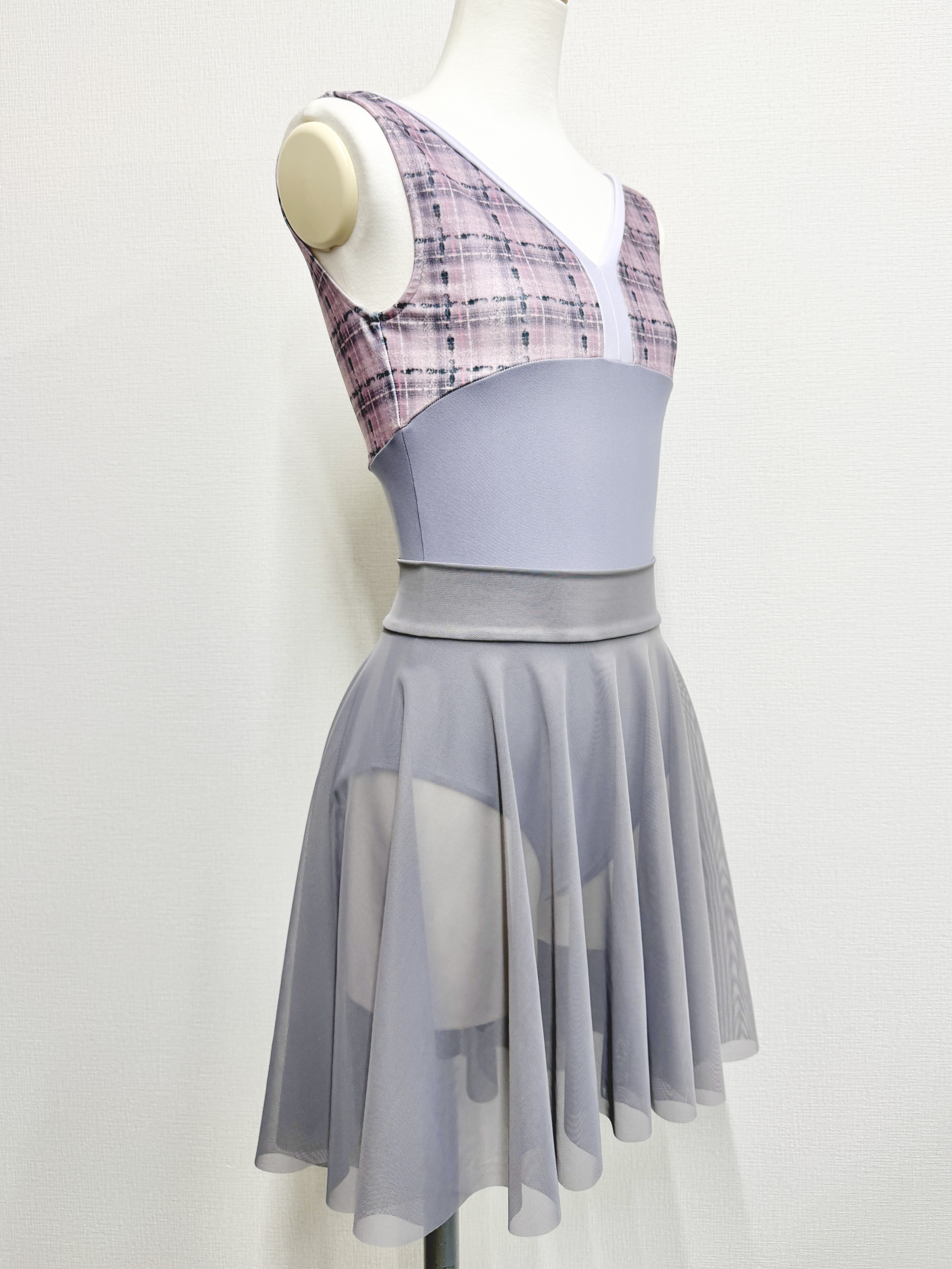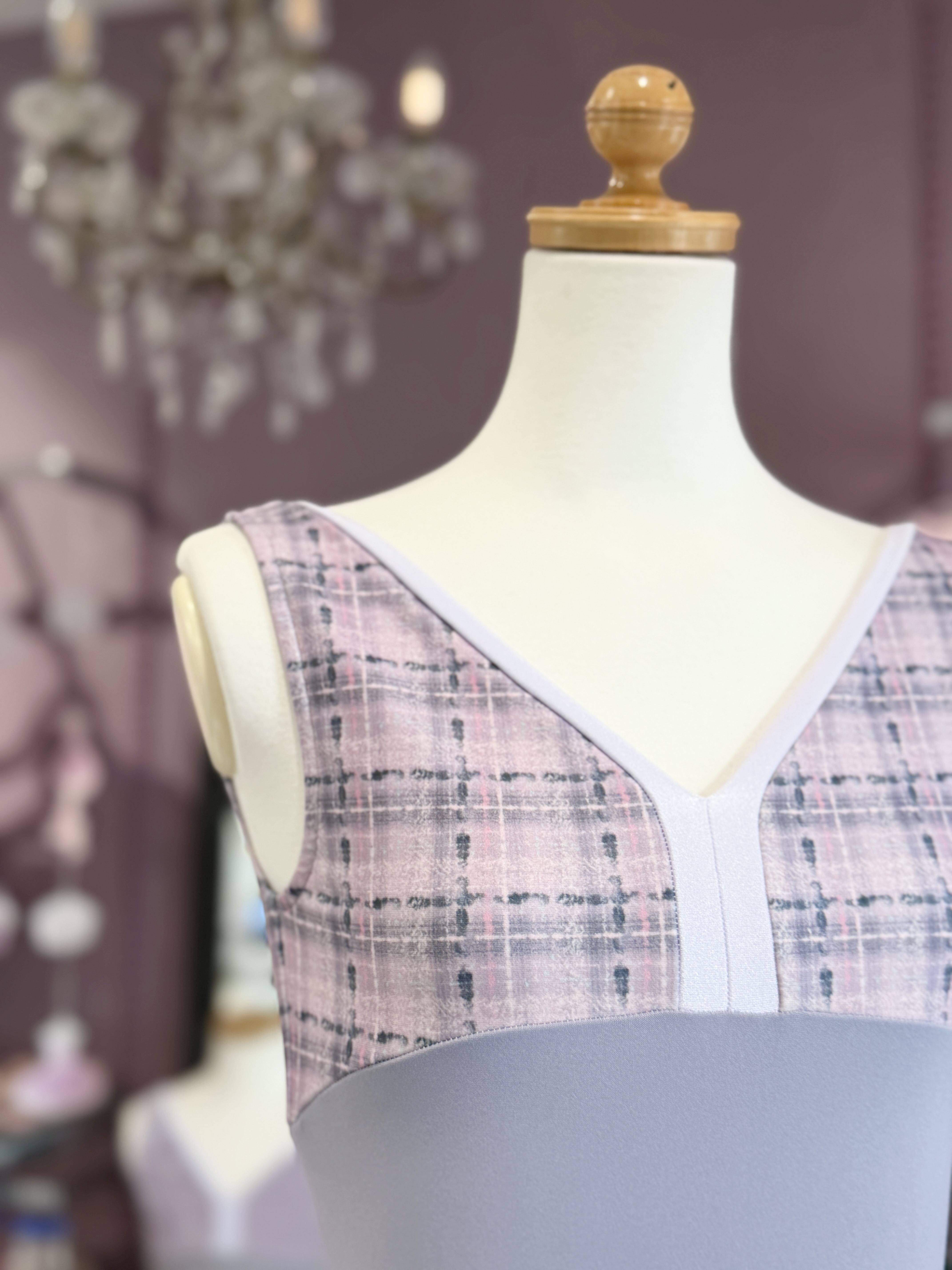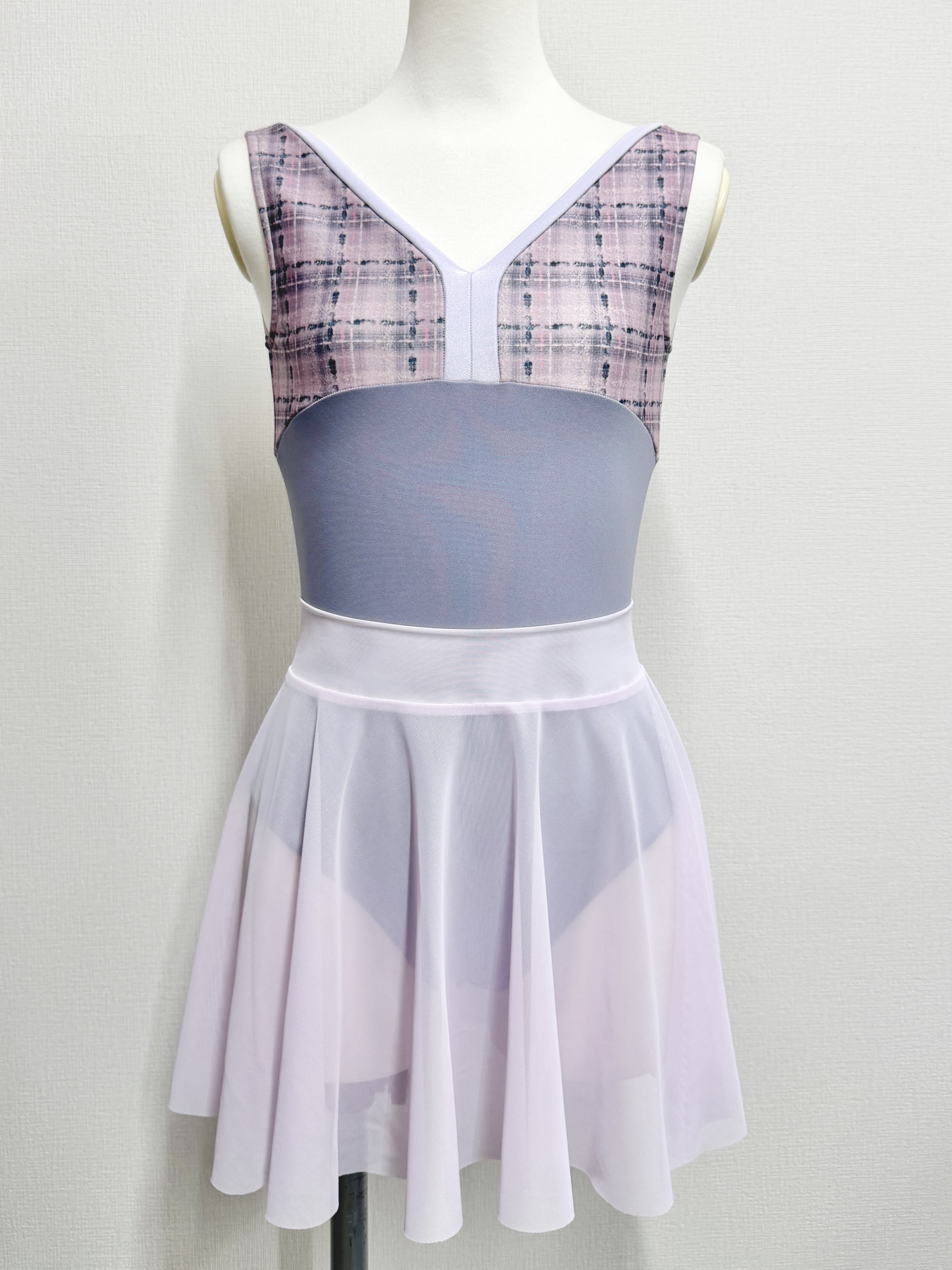 『スフレツイード』パイピングVネックレオタード(ピンクラベンダー)