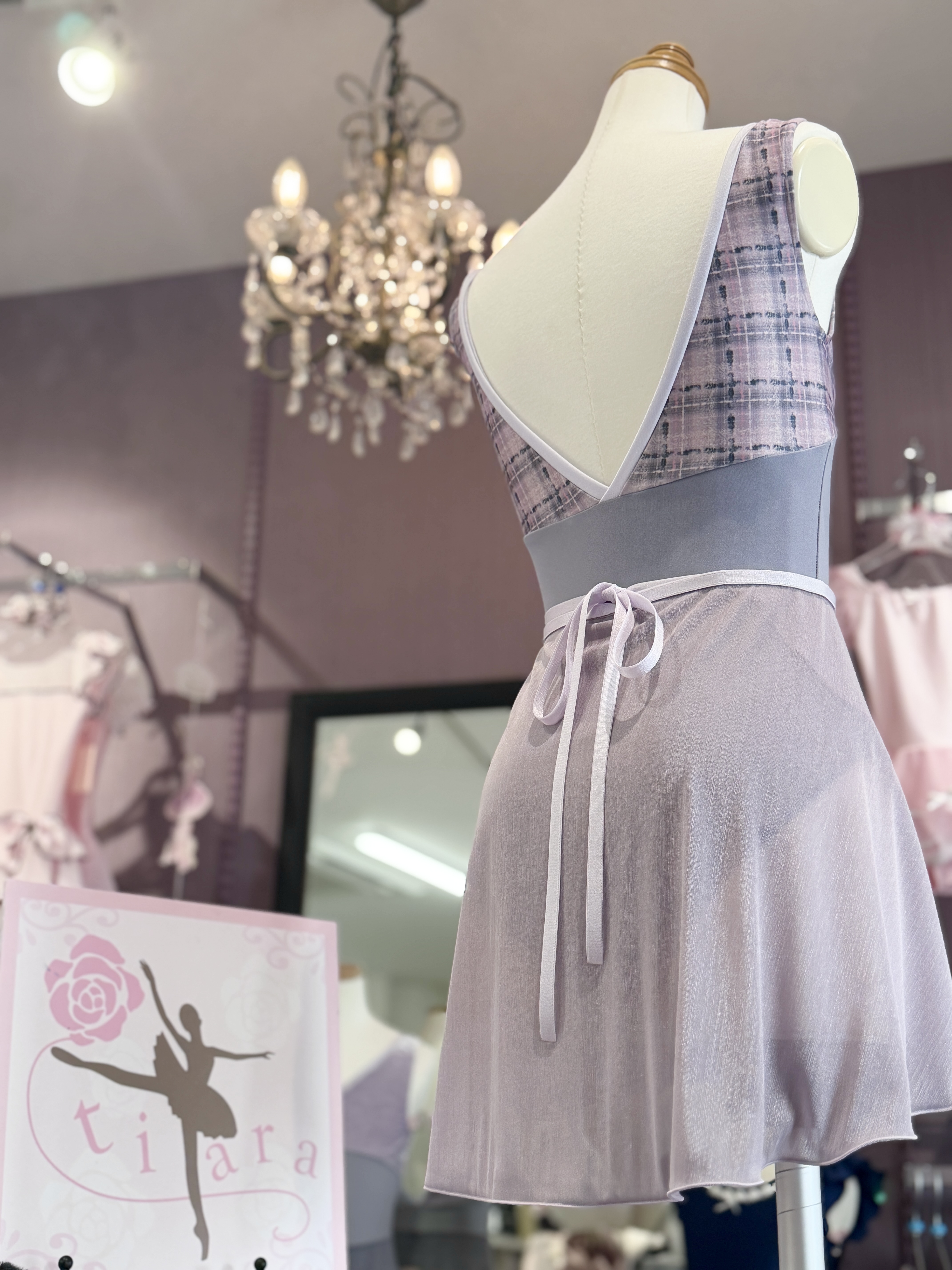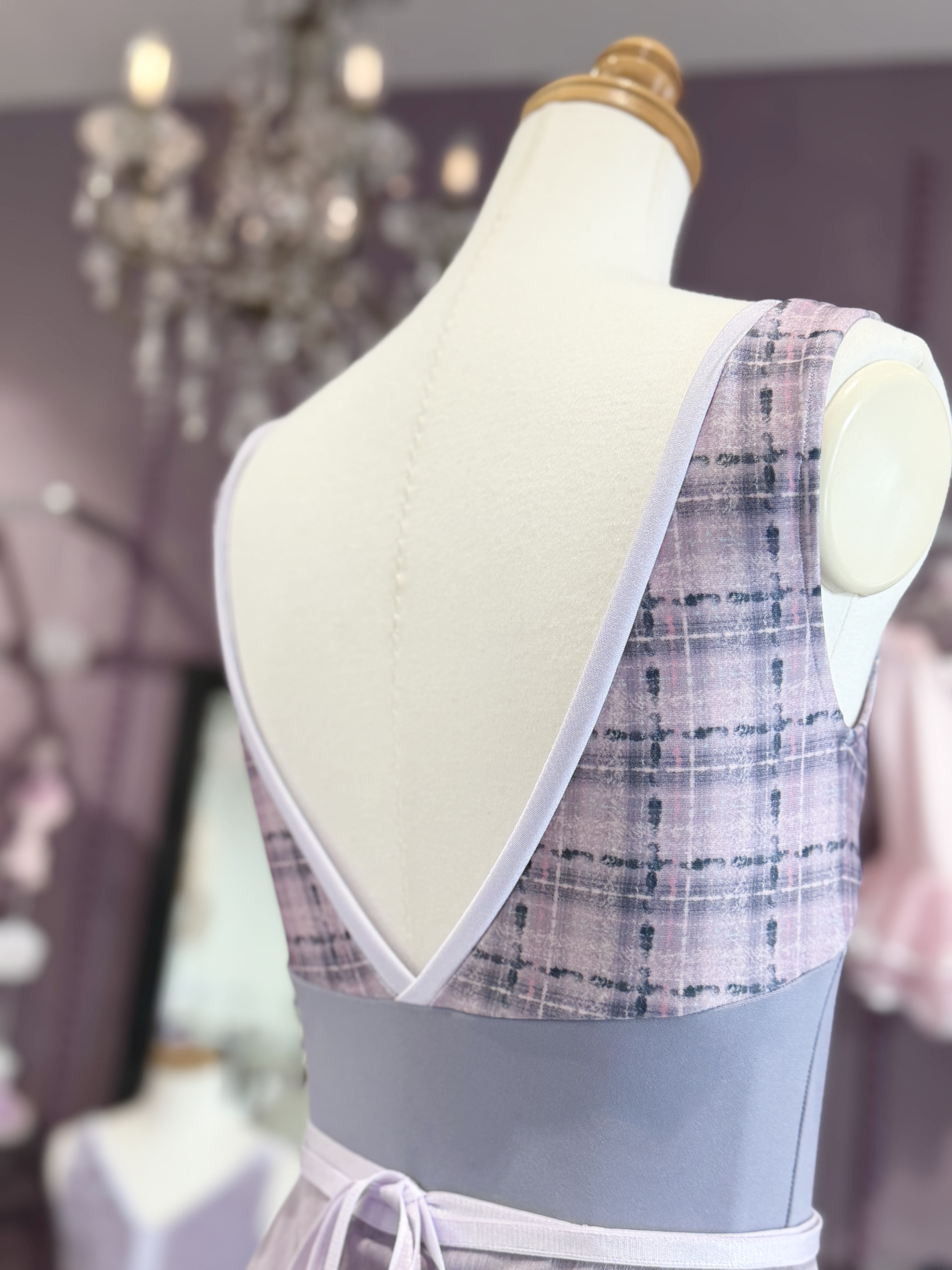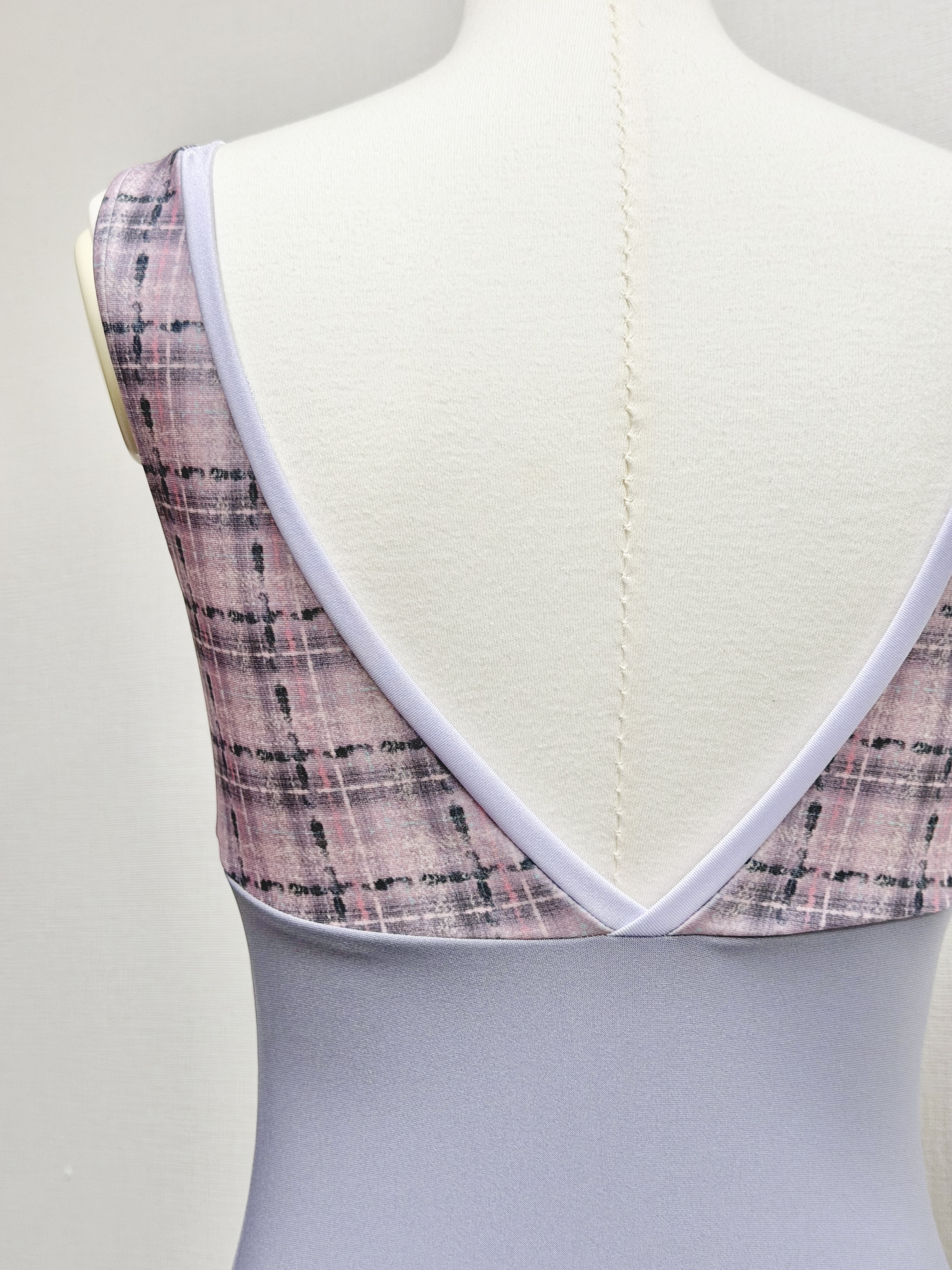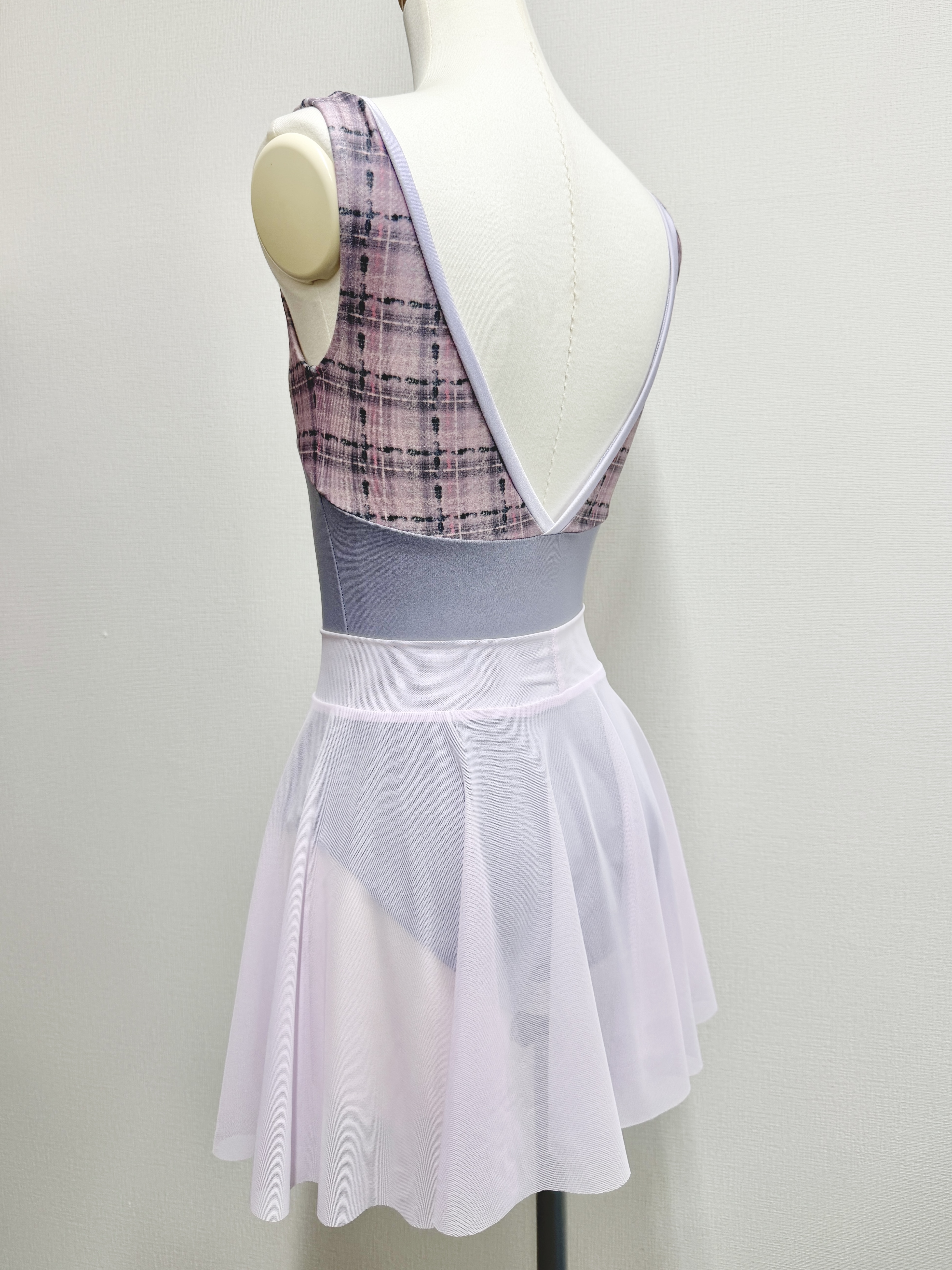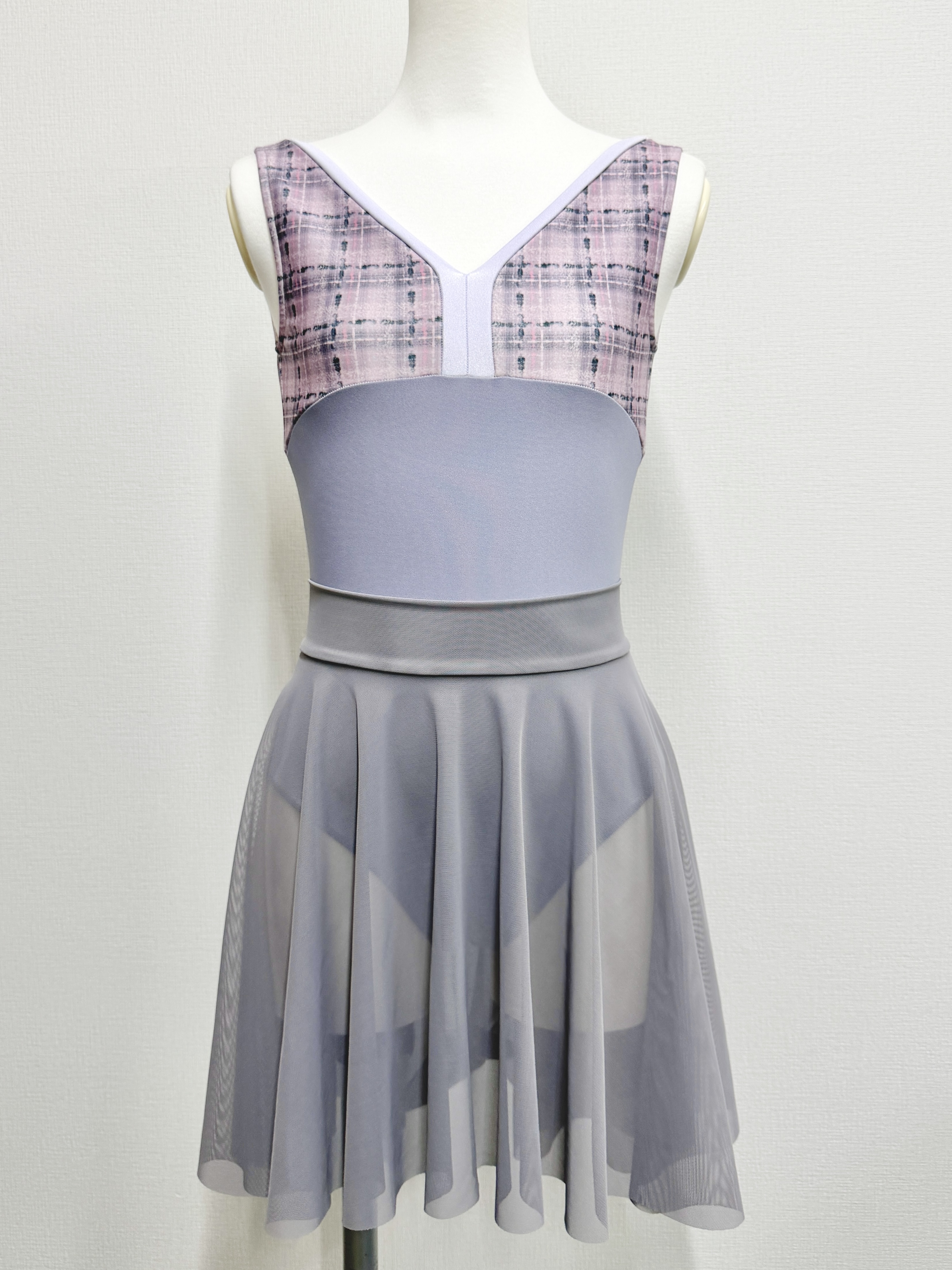 『スフレツイード』パイピングVネックレオタード(ピンクラベンダー)
