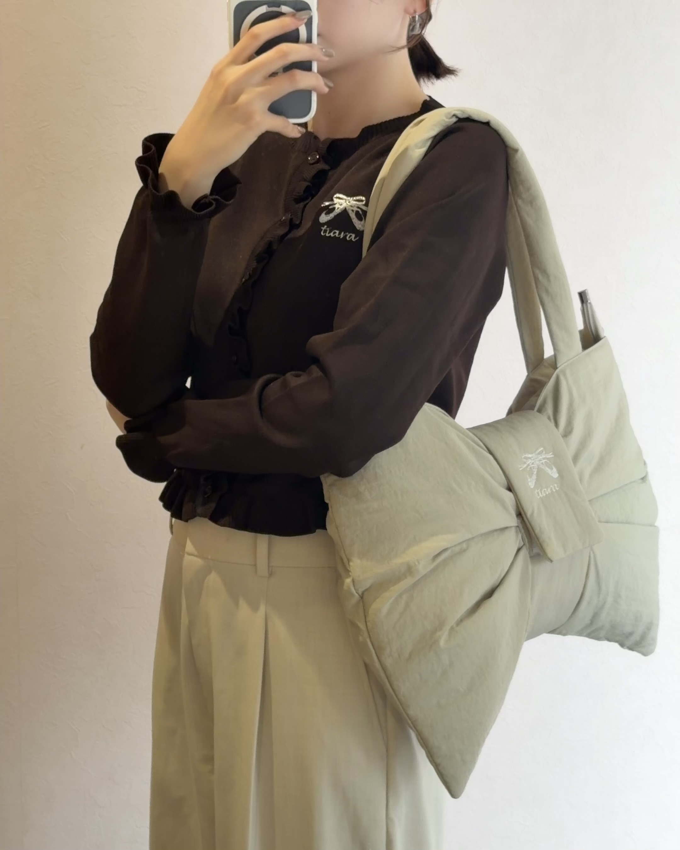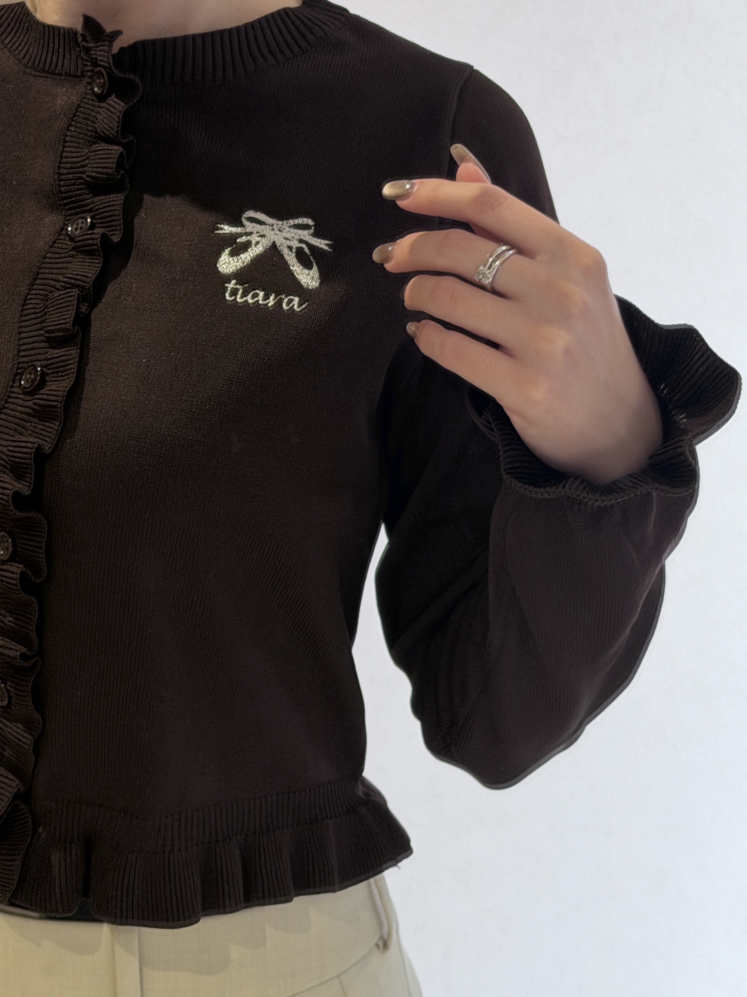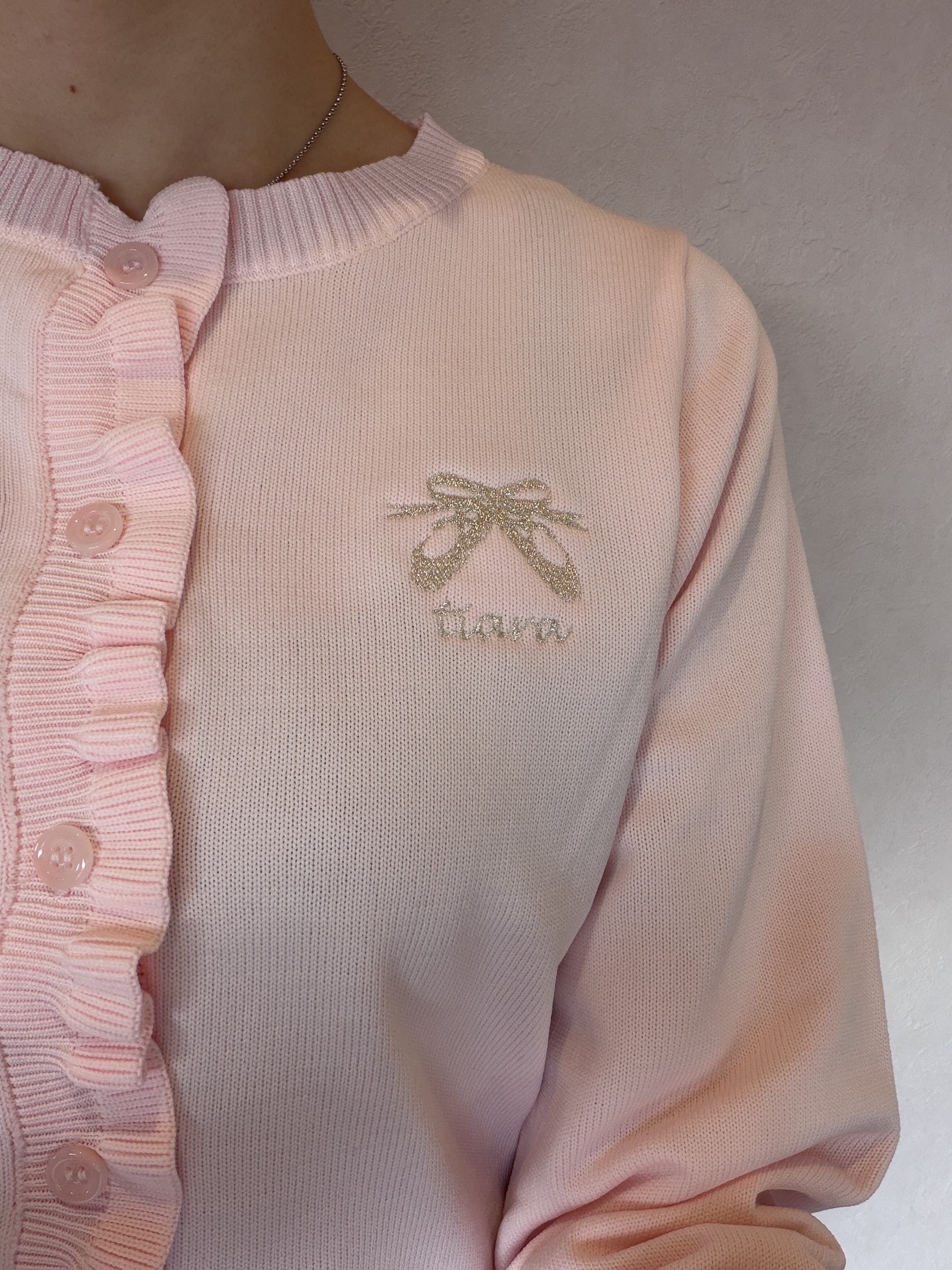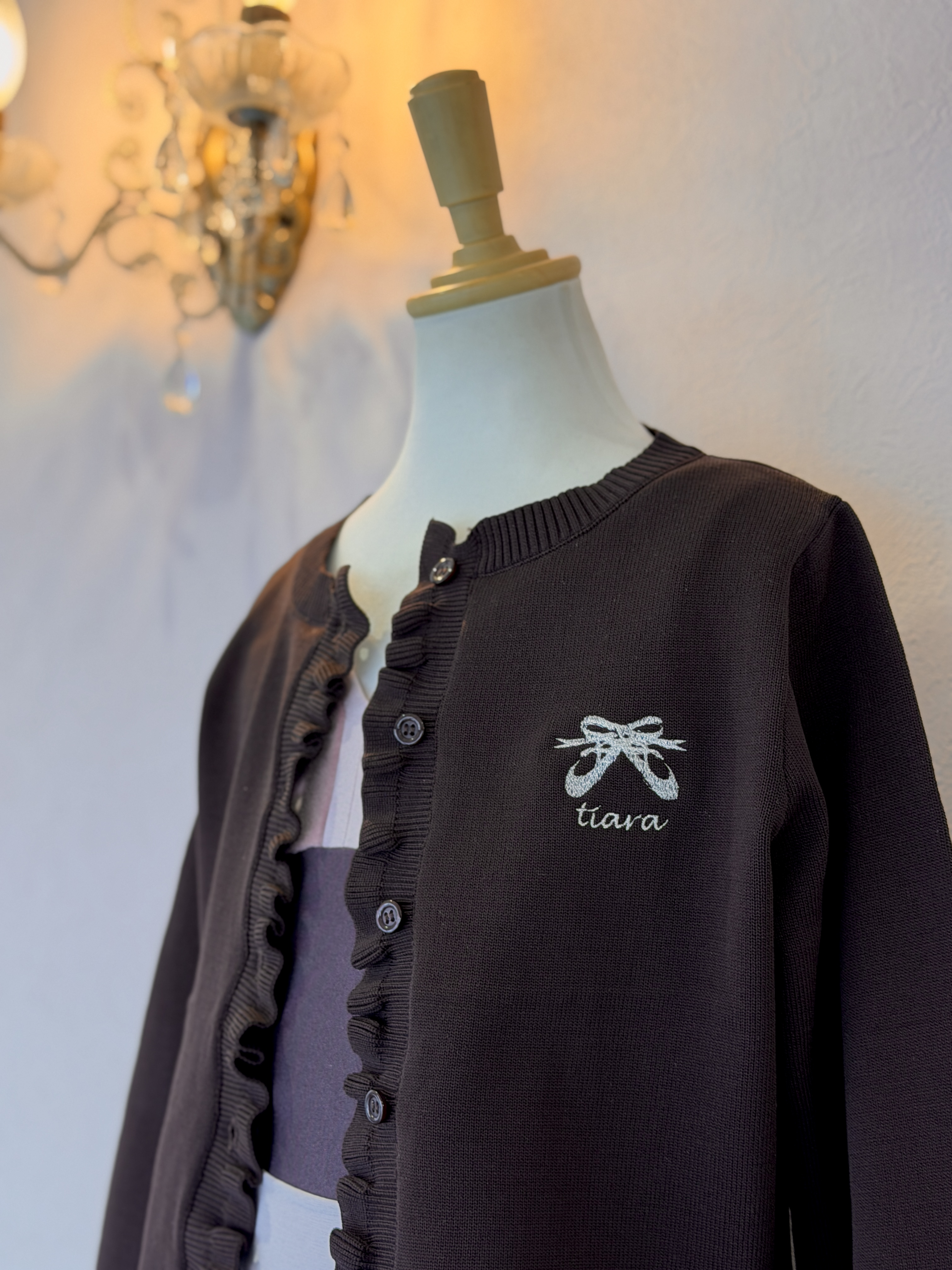 胸元にシルバーのトゥシューズ刺繍が施されてます。