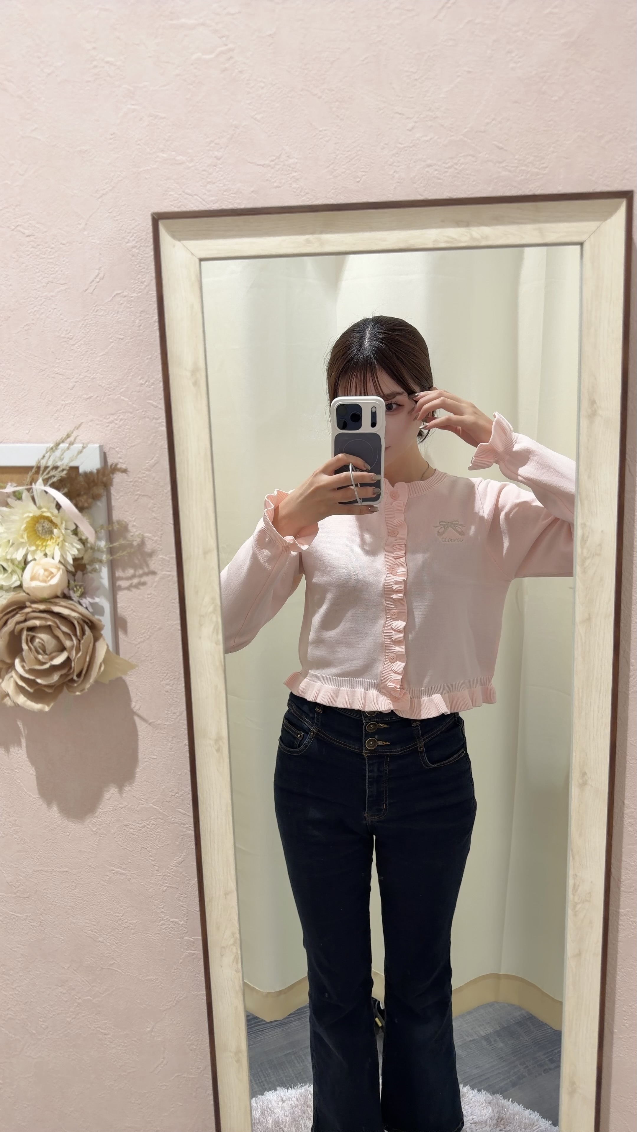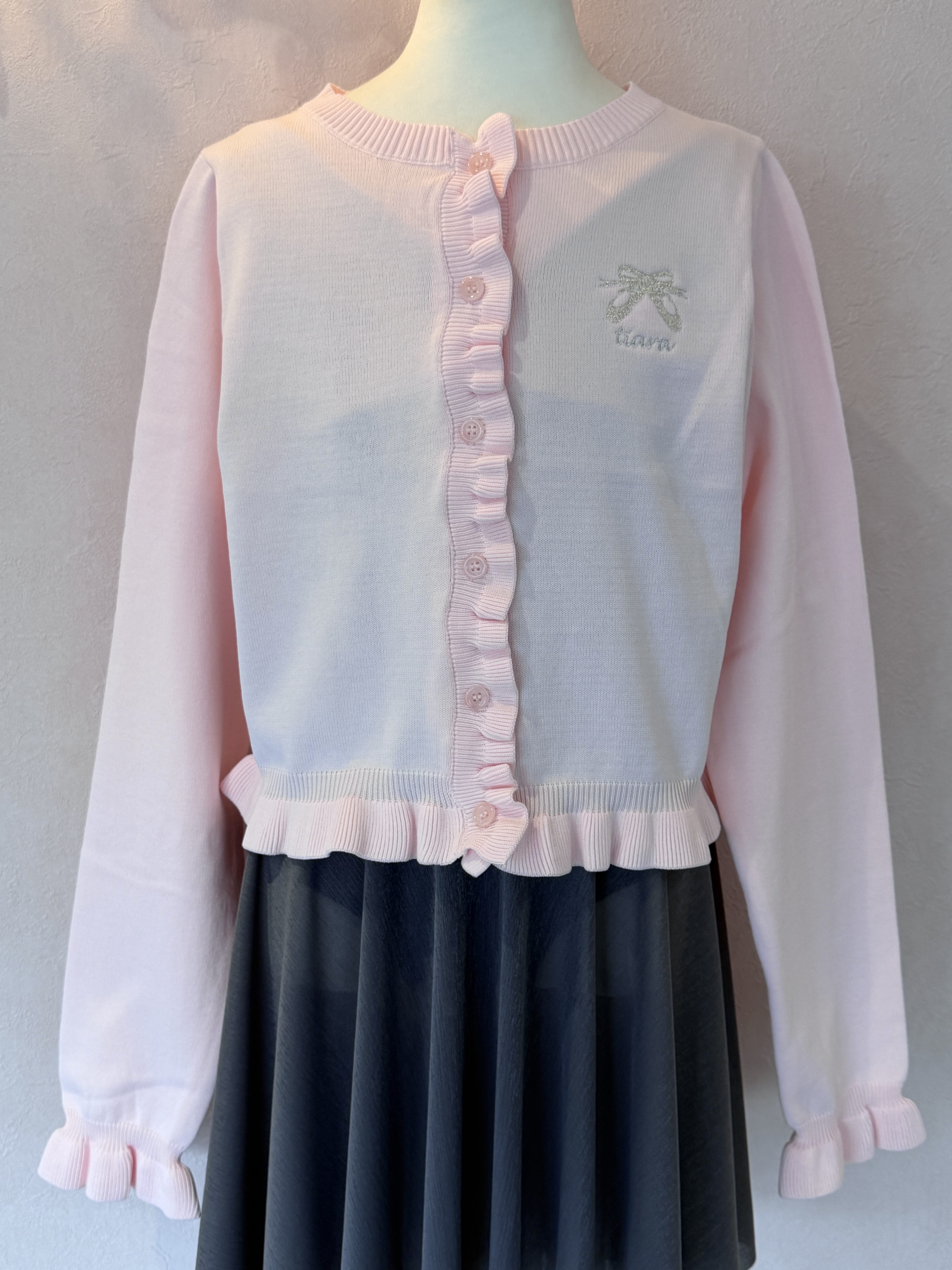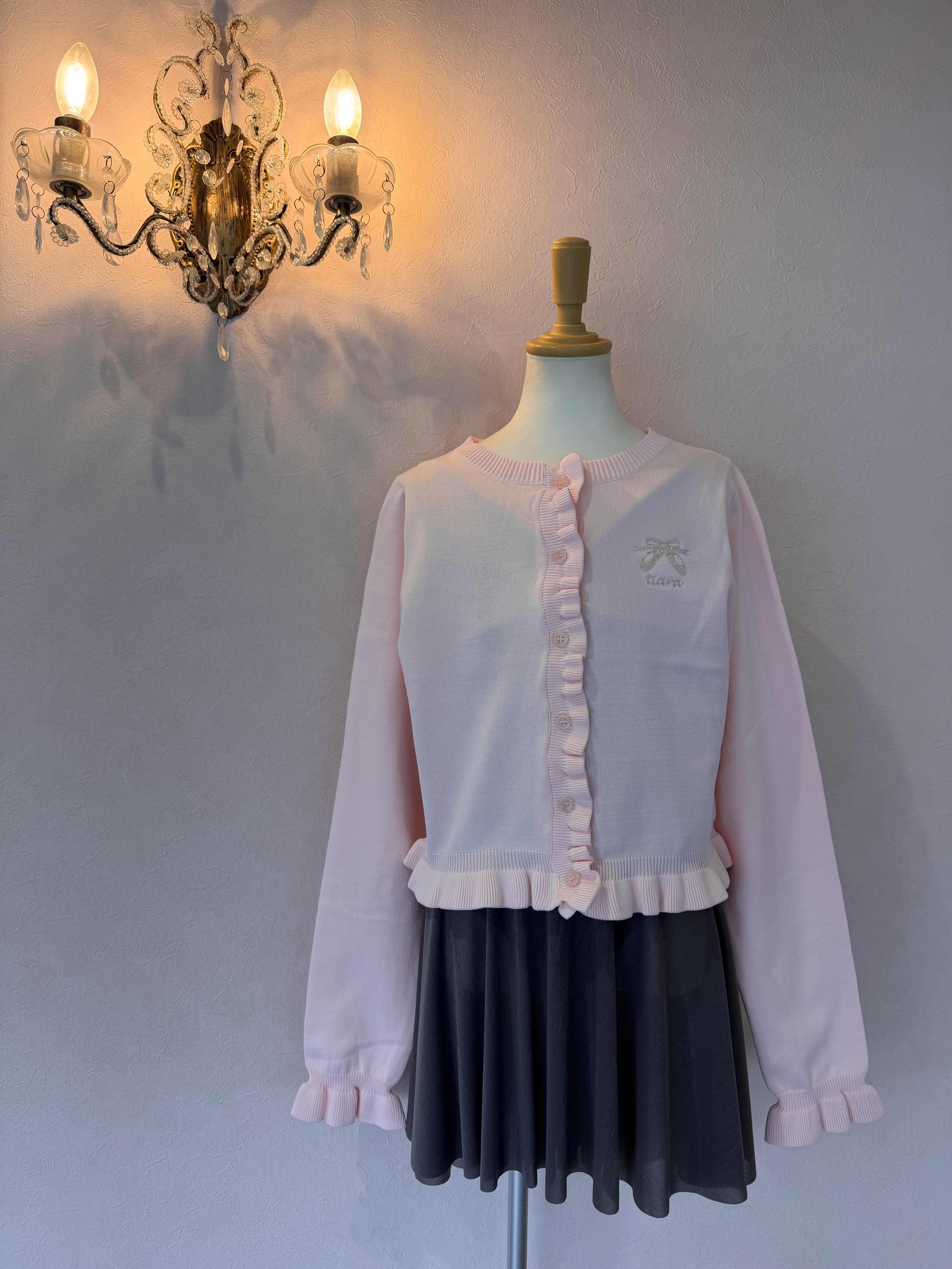 前立て、裾、袖にあしらったフリルが立体的でかわいい♡